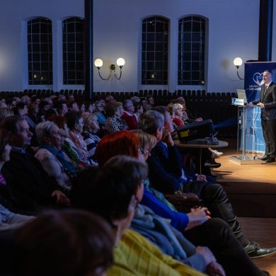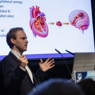 „A stroke titkai: rajtunk is múlik. Többet tehetünk, mint gondolnánk.” címmel tartott előadást dr. Jarecsny Tamás, neurológus, a MIND Klinikai Fejfájás Centrum vezetője (Városi Hangverseny- és Kiállítóterem, 2026.03.03.) – Fotó: Seres Péter