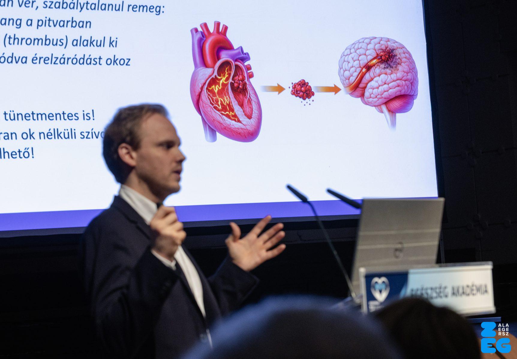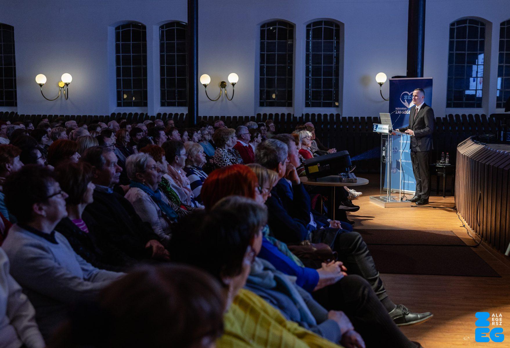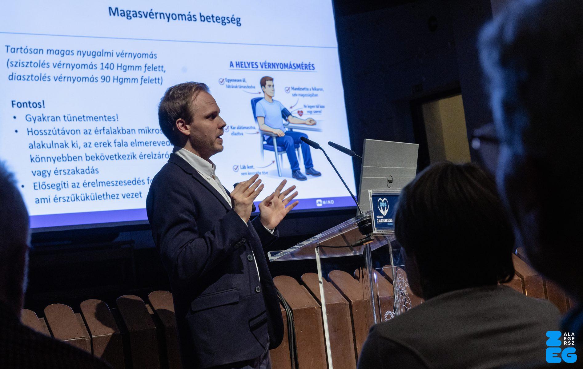 „A stroke titkai: rajtunk is múlik. Többet tehetünk, mint gondolnánk.” címmel tartott előadást dr. Jarecsny Tamás, neurológus, a MIND Klinikai Fejfájás Centrum vezetője (Városi Hangverseny- és Kiállítóterem, 2026.03.03.) – Fotó: Seres Péter