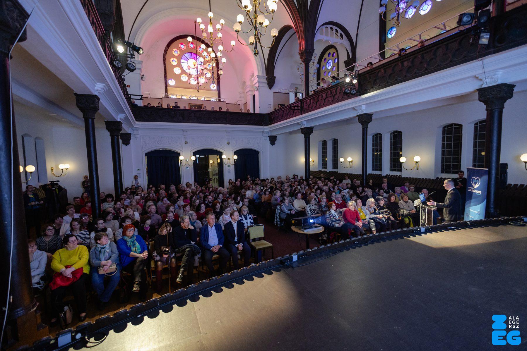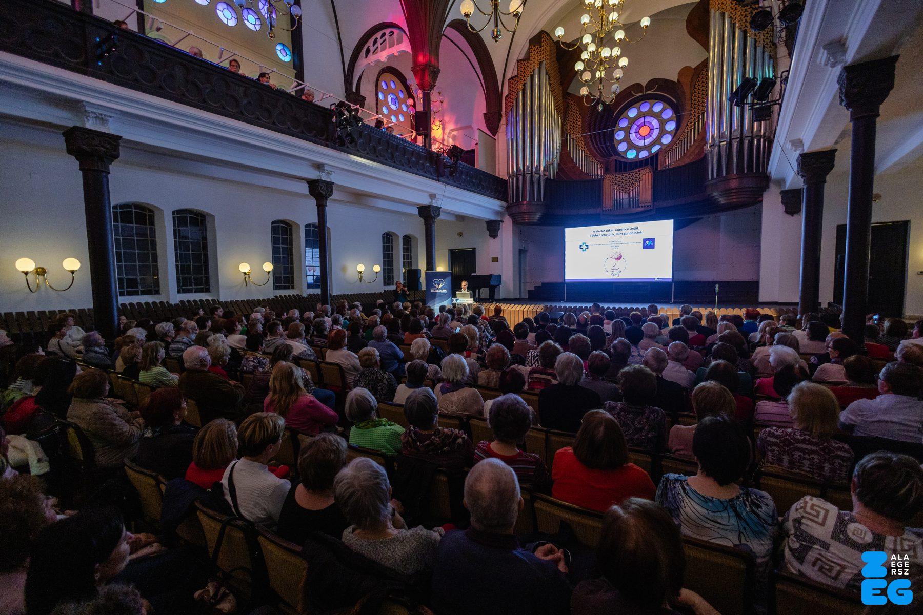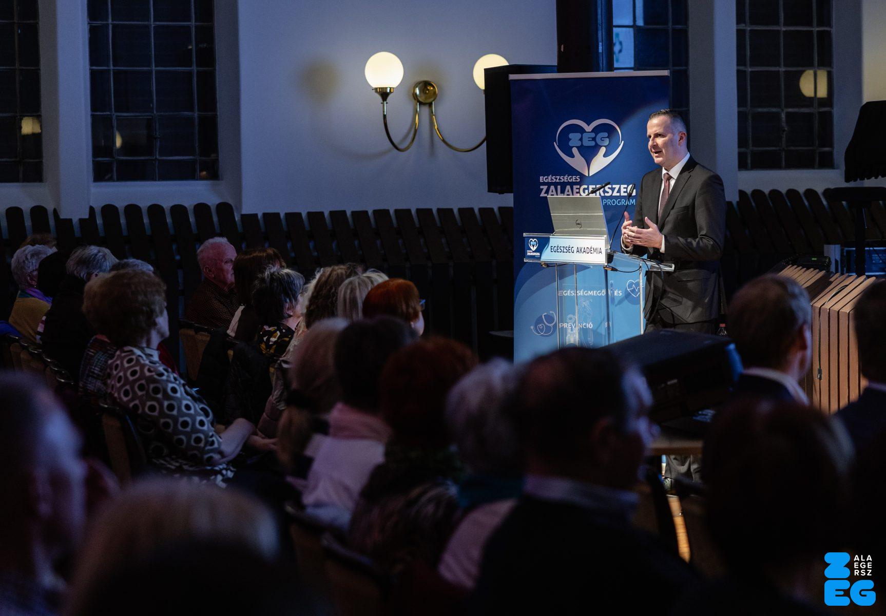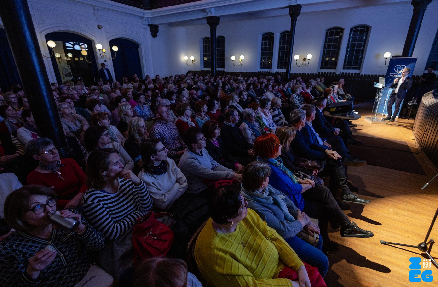 „A stroke titkai: rajtunk is múlik. Többet tehetünk, mint gondolnánk.” címmel tartott előadást dr. Jarecsny Tamás, neurológus, a MIND Klinikai Fejfájás Centrum vezetője (Városi Hangverseny- és Kiállítóterem, 2026.03.03.) – Fotó: Seres Péter