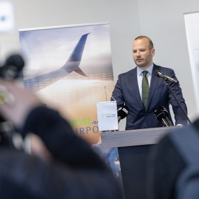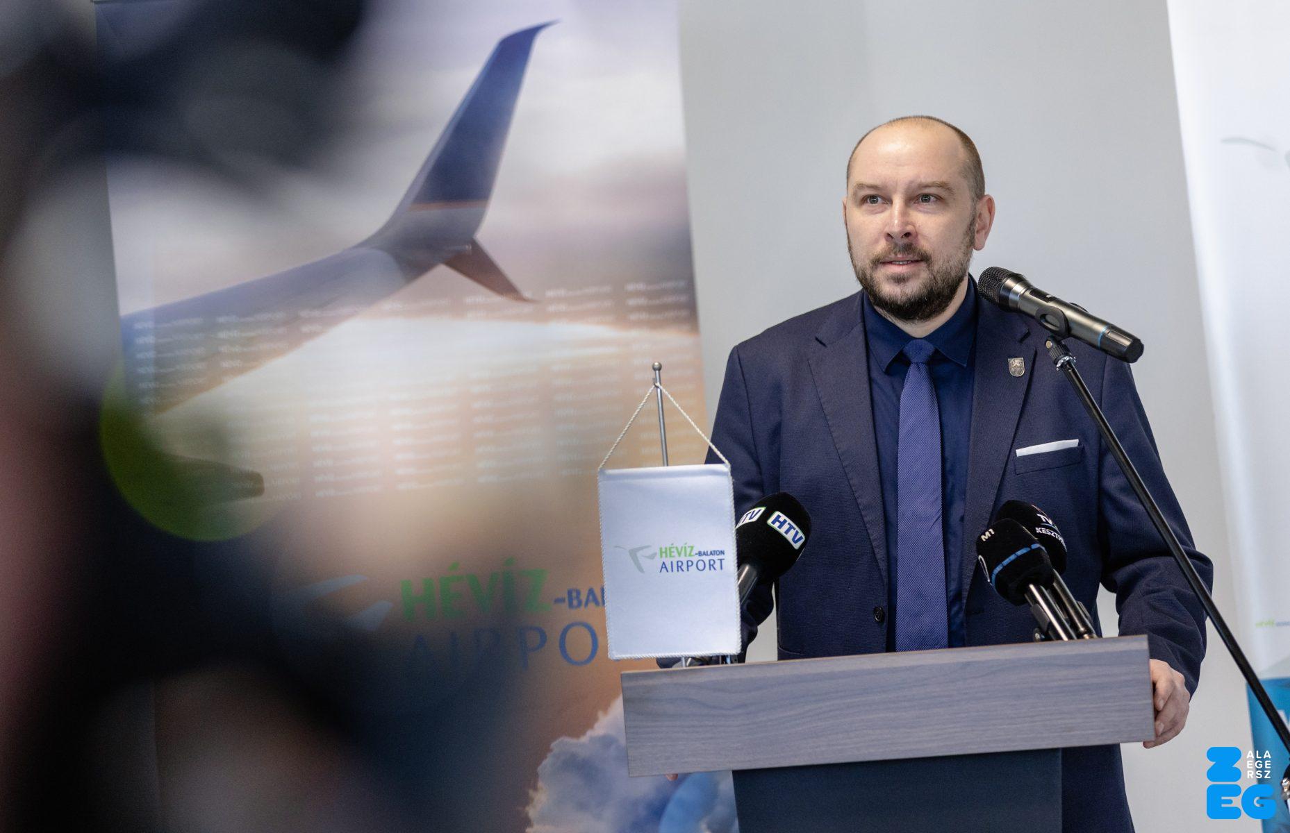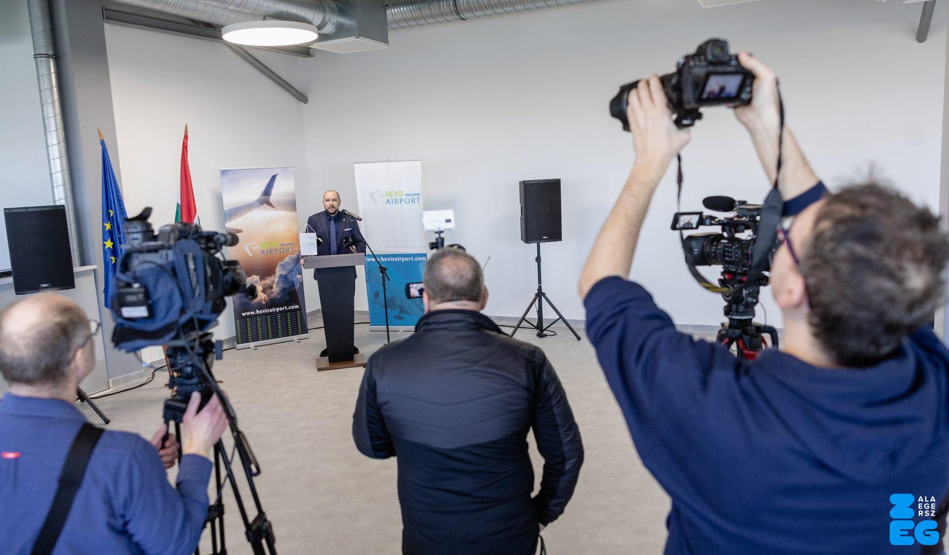 A „Hévíz-Balaton Airport, repülőtér infrastruktúra karbantartáshoz, fejlesztéséhez szükséges engedélyezési és kiviteli terveinek elkészítése, teljeskörű hatósági engedélyeztetése és kivitelezése” projekt átadó ünnepsége (Sármellék, repülőtér, 2026.02.27.) – Fotó: Seres Péter