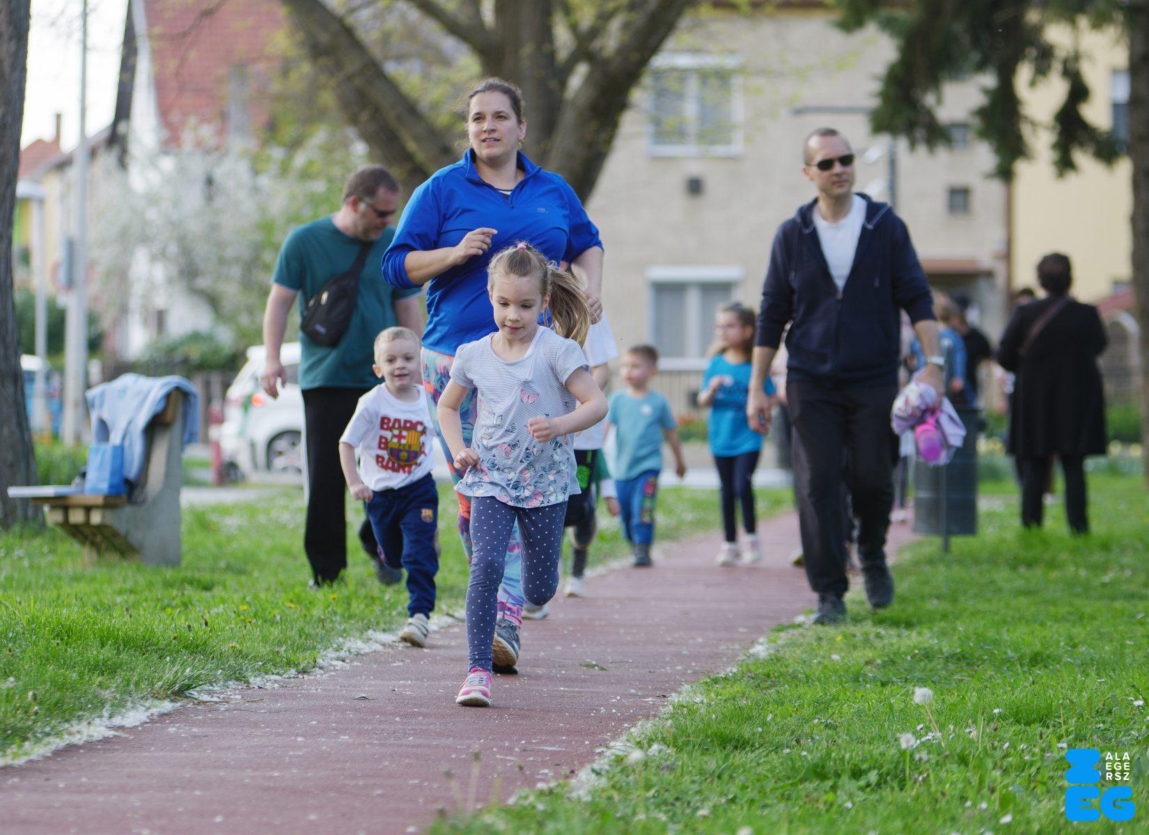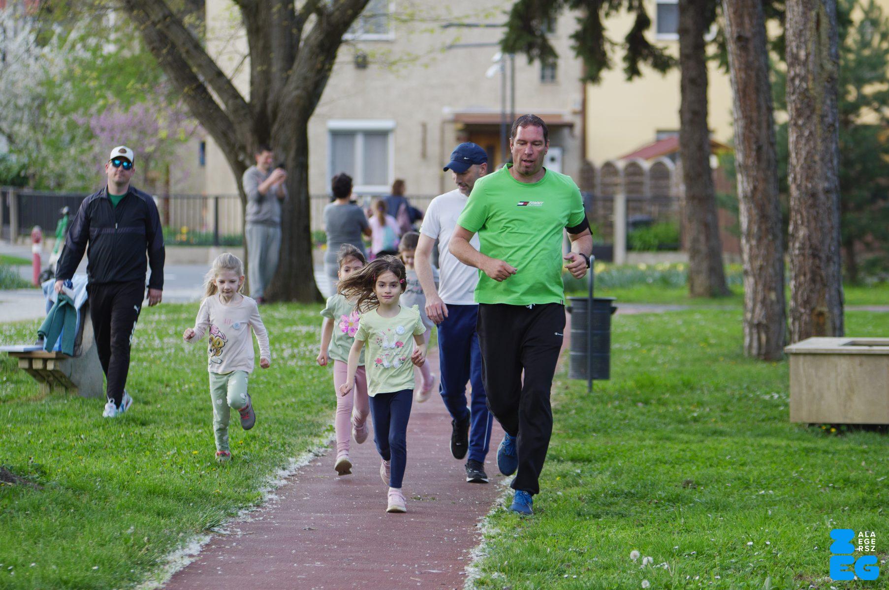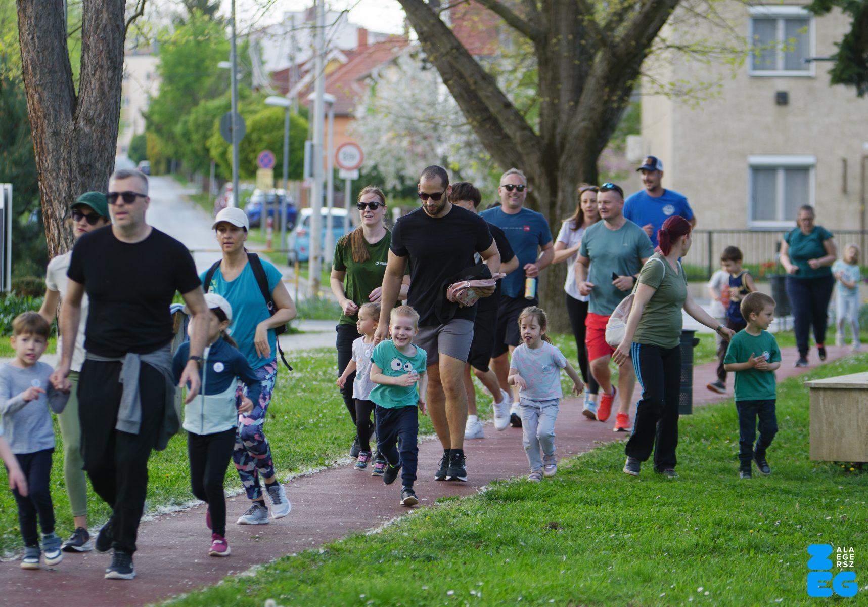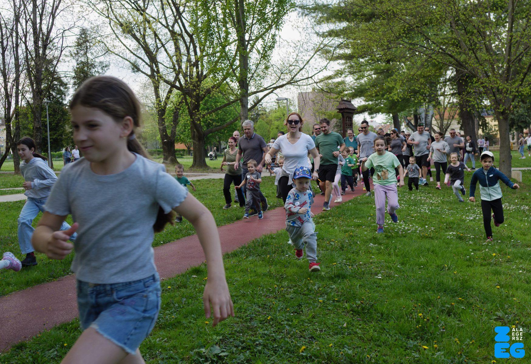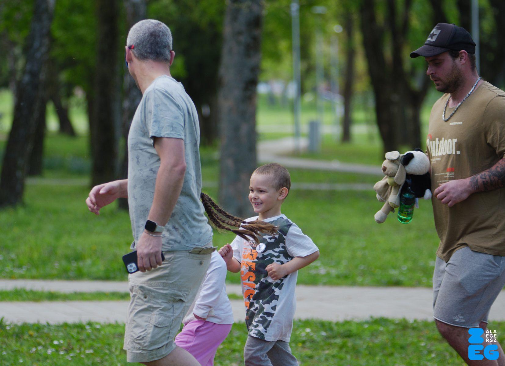 A Mikes Óvoda egészséghetet szervezett az Egészséges Zalaegerszeg Program keretében. A rendezvénysorozat elsődleges célja az egészséges életmód és a rendszeres mozgás népszerűsítése volt a legkisebbek körében. A tematikus hetet pénteken a Vizslaparkban zárták, ahol a gyerekek közös bemelegítéssel és egy vidám hangulatú futással búcsúztatták a programot. (Vizslapark, 2026.04.17.) – Fotó: Tóth János