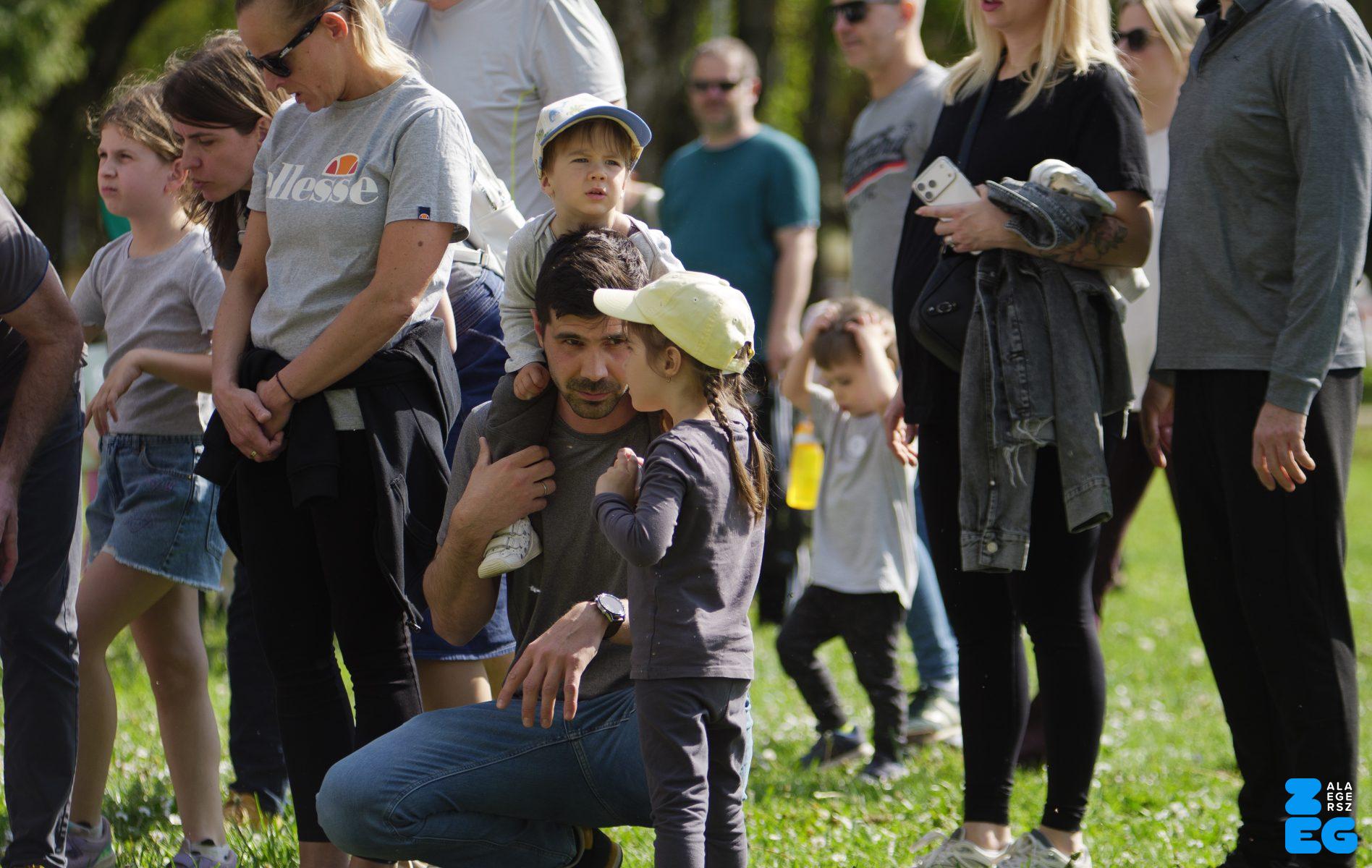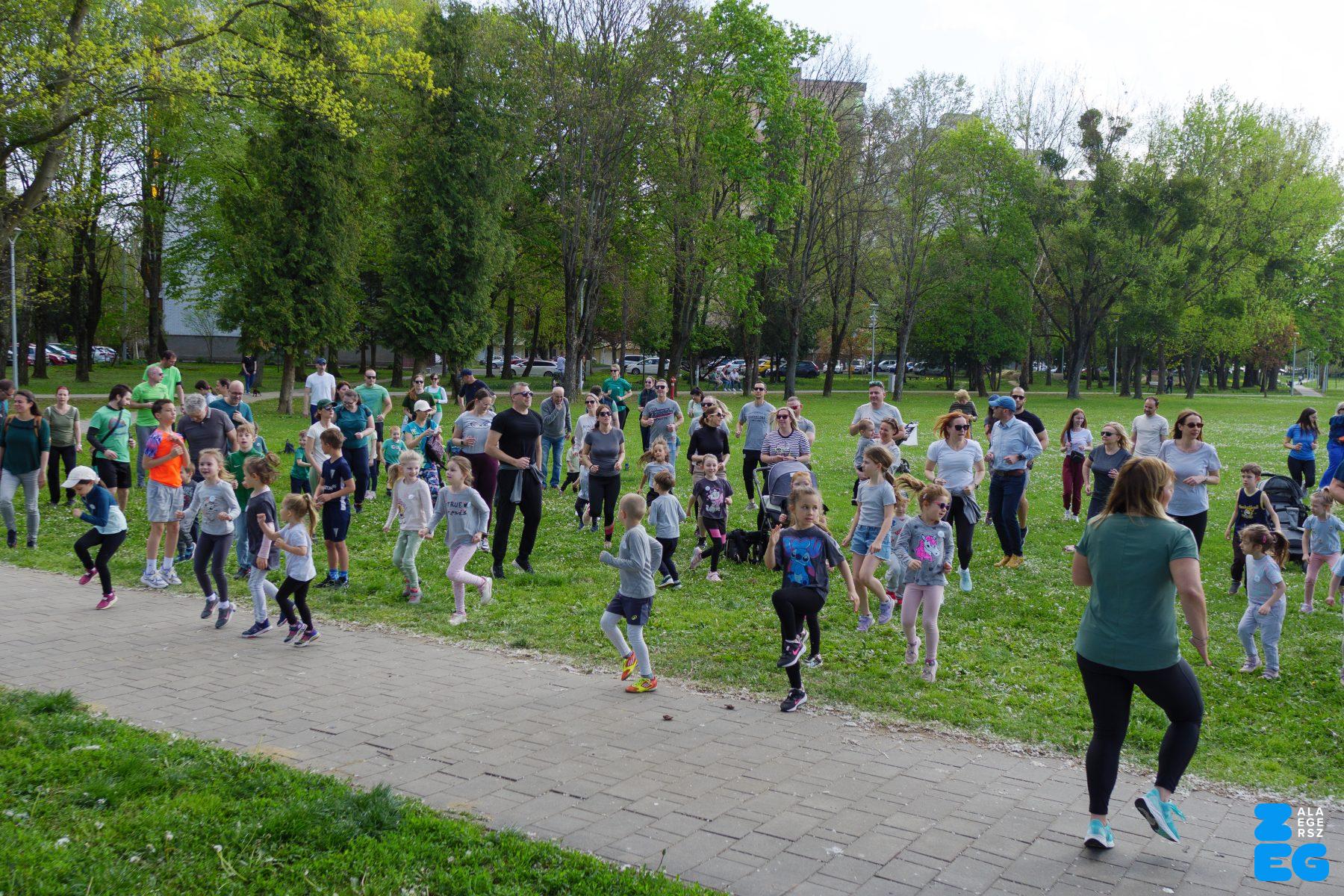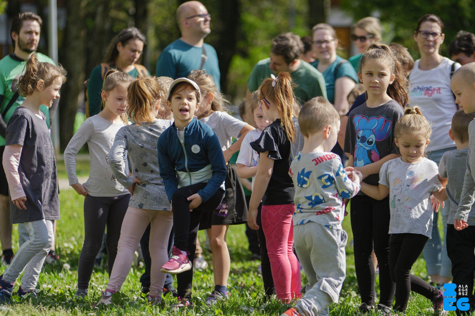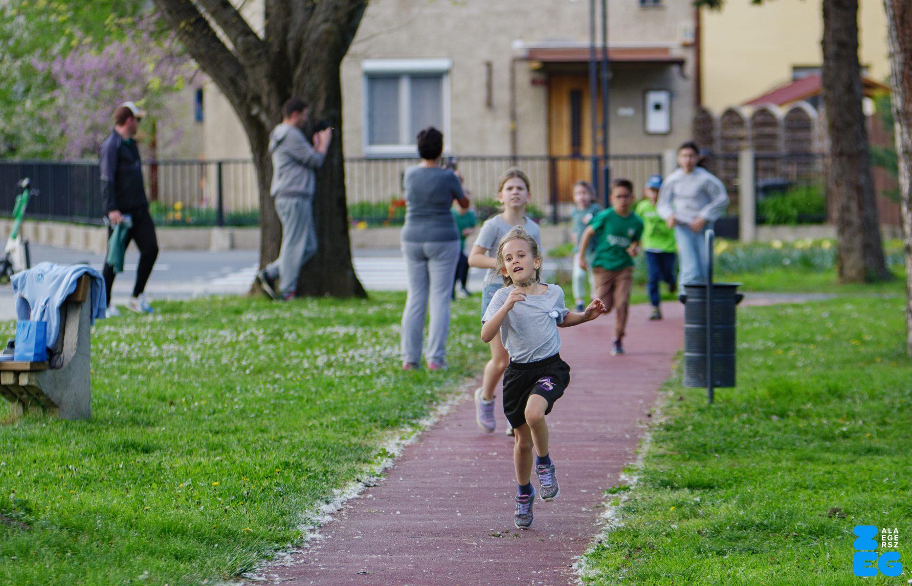 A Mikes Óvoda egészséghetet szervezett az Egészséges Zalaegerszeg Program keretében. A rendezvénysorozat elsődleges célja az egészséges életmód és a rendszeres mozgás népszerűsítése volt a legkisebbek körében. A tematikus hetet pénteken a Vizslaparkban zárták, ahol a gyerekek közös bemelegítéssel és egy vidám hangulatú futással búcsúztatták a programot. (Vizslapark, 2026.04.17.) – Fotó: Tóth János