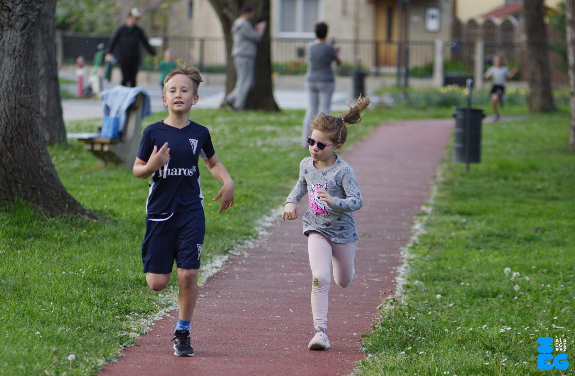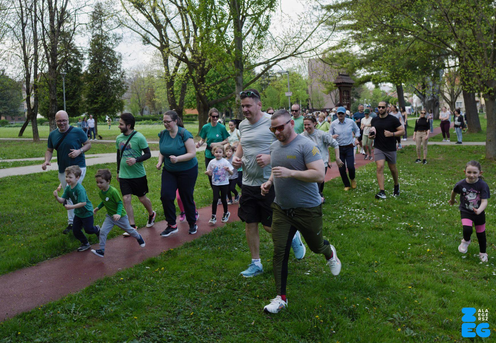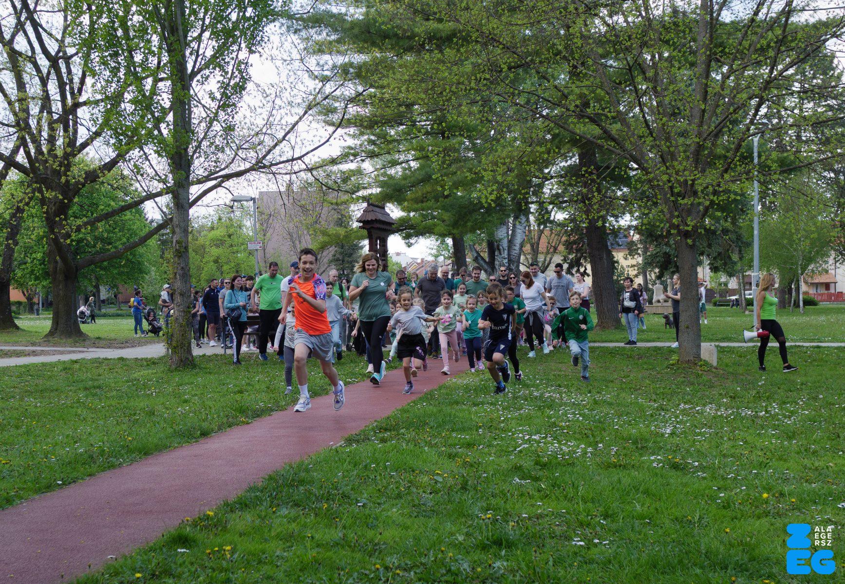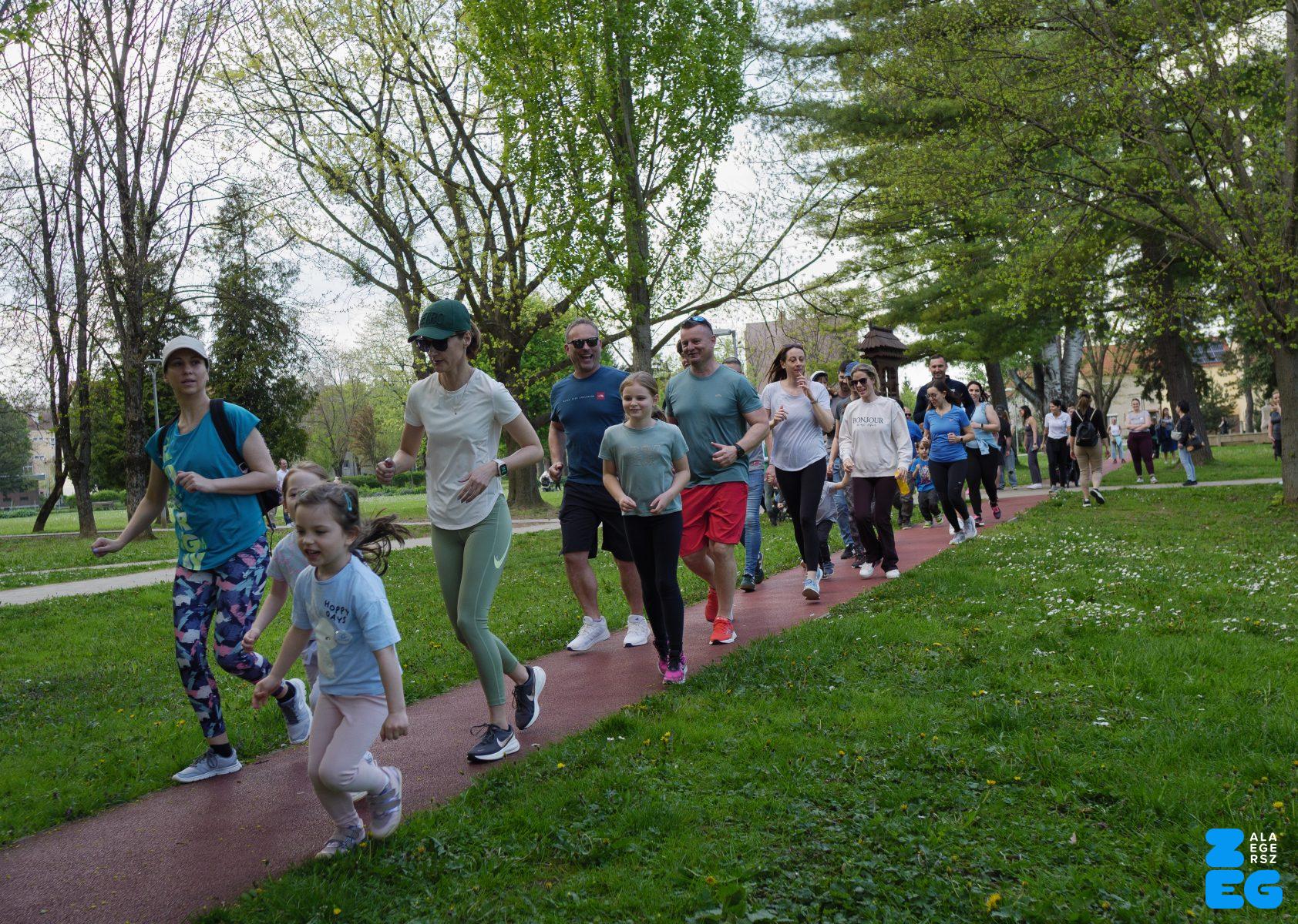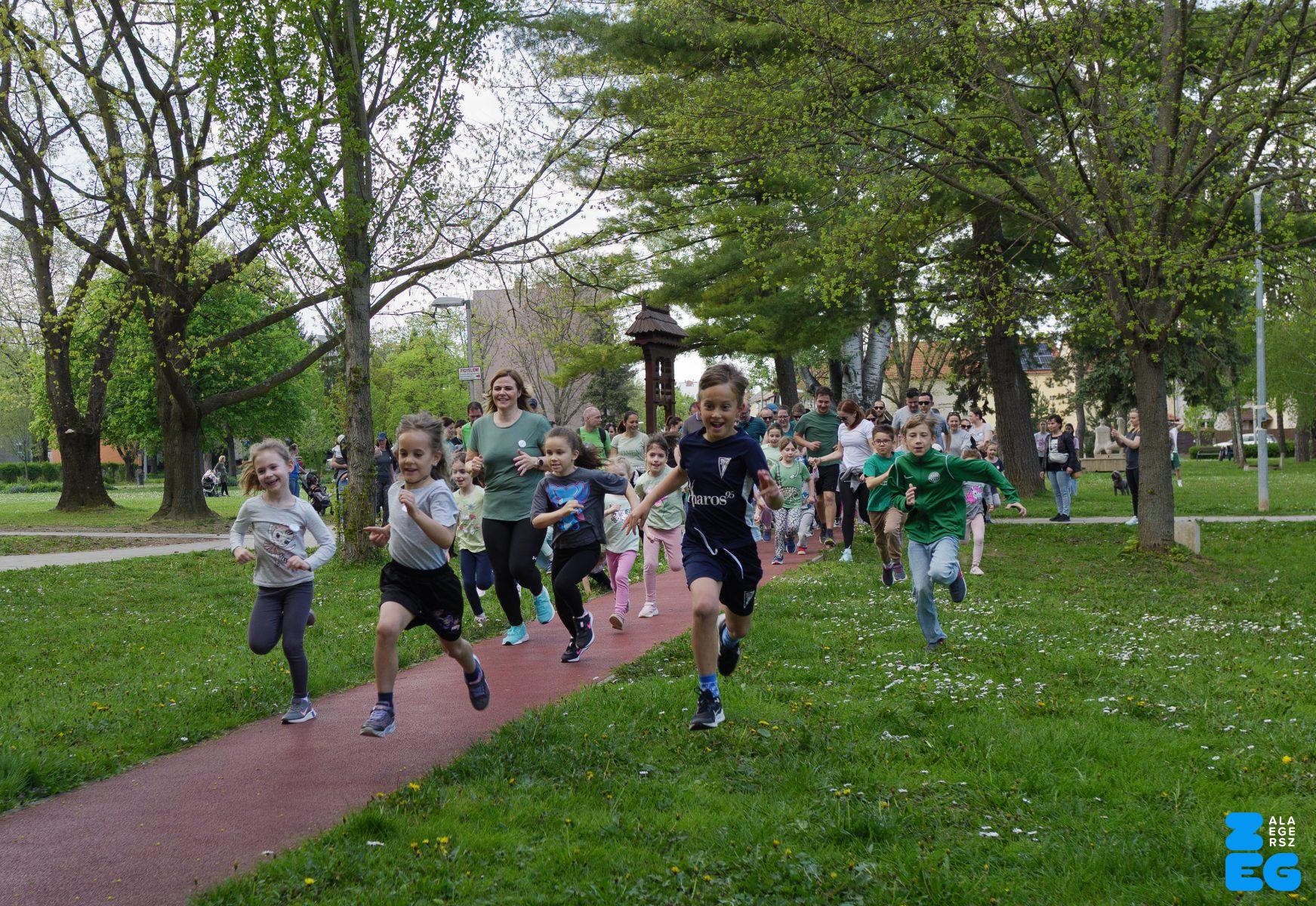 A Mikes Óvoda egészséghetet szervezett az Egészséges Zalaegerszeg Program keretében. A rendezvénysorozat elsődleges célja az egészséges életmód és a rendszeres mozgás népszerűsítése volt a legkisebbek körében. A tematikus hetet pénteken a Vizslaparkban zárták, ahol a gyerekek közös bemelegítéssel és egy vidám hangulatú futással búcsúztatták a programot. (Vizslapark, 2026.04.17.) – Fotó: Tóth János
