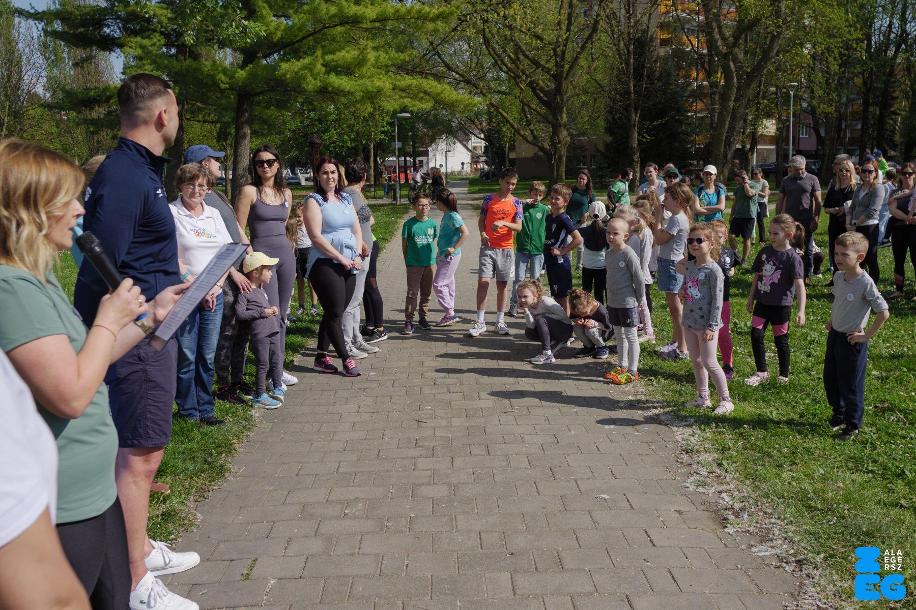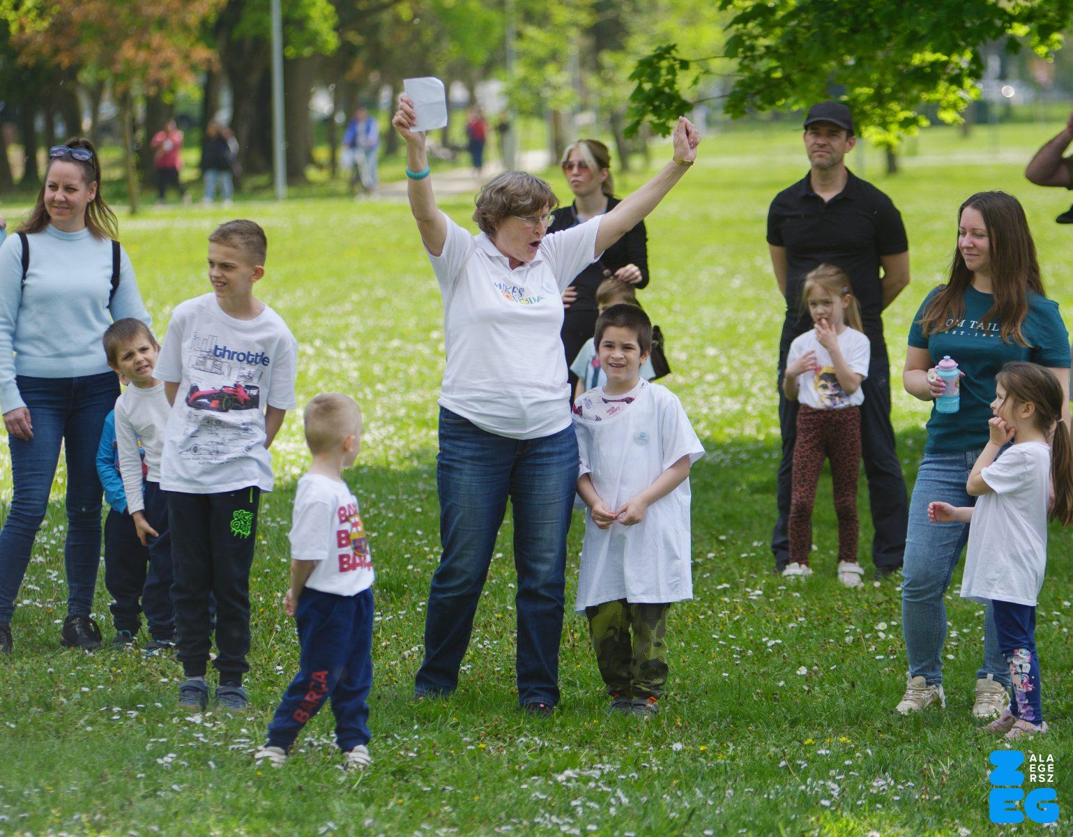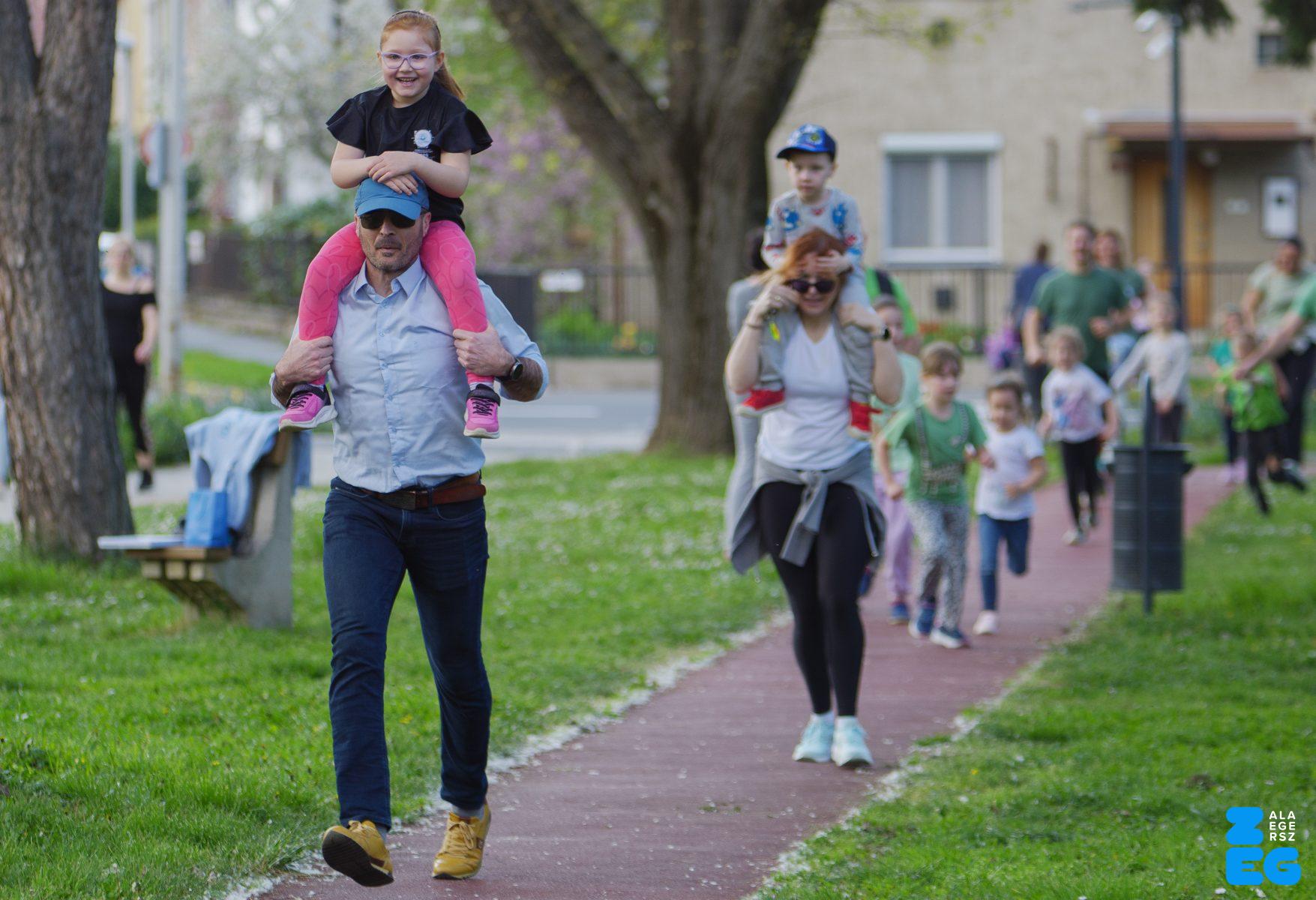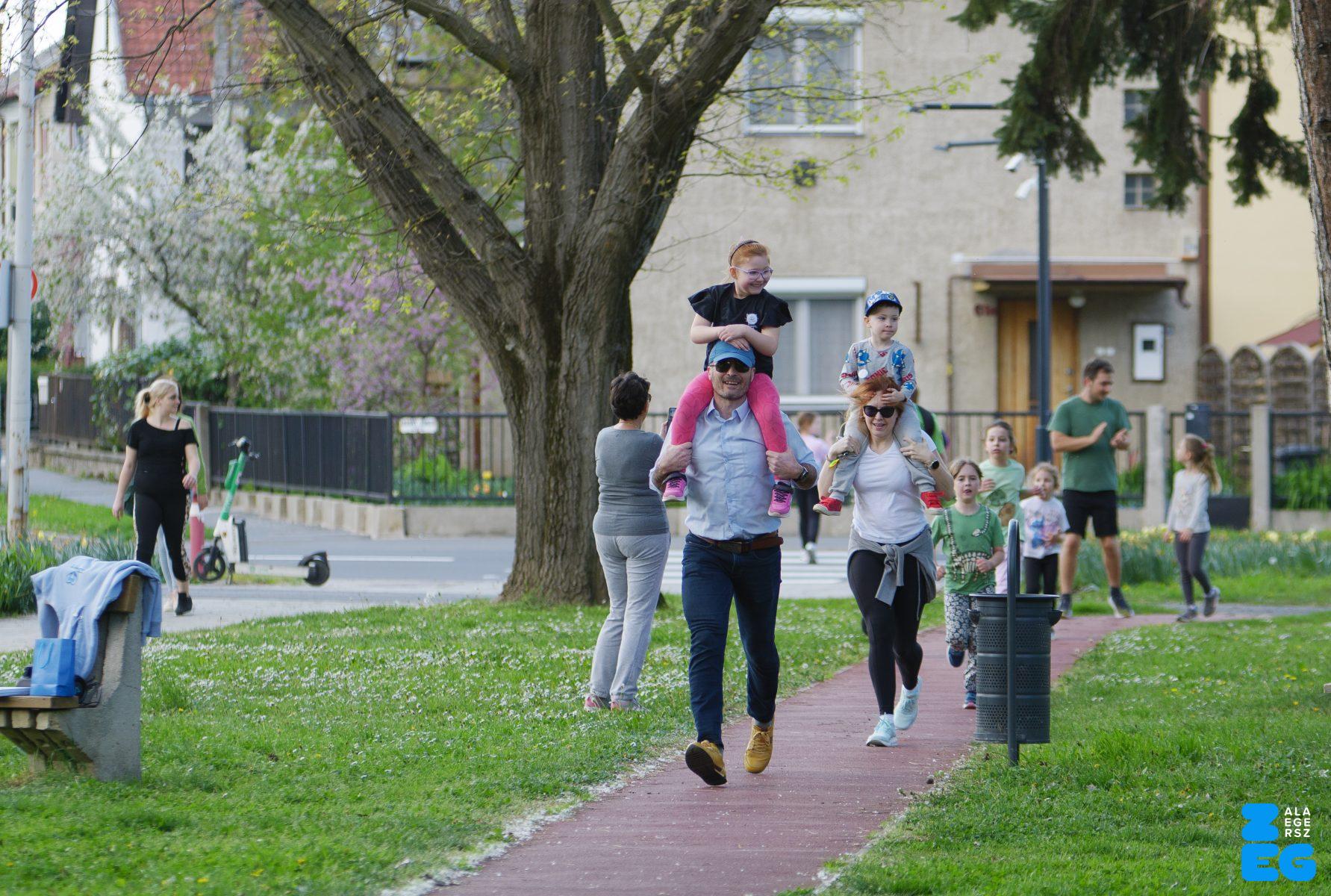 A Mikes Óvoda egészséghetet szervezett az Egészséges Zalaegerszeg Program keretében. A rendezvénysorozat elsődleges célja az egészséges életmód és a rendszeres mozgás népszerűsítése volt a legkisebbek körében. A tematikus hetet pénteken a Vizslaparkban zárták, ahol a gyerekek közös bemelegítéssel és egy vidám hangulatú futással búcsúztatták a programot. (Vizslapark, 2026.04.17.) – Fotó: Tóth János