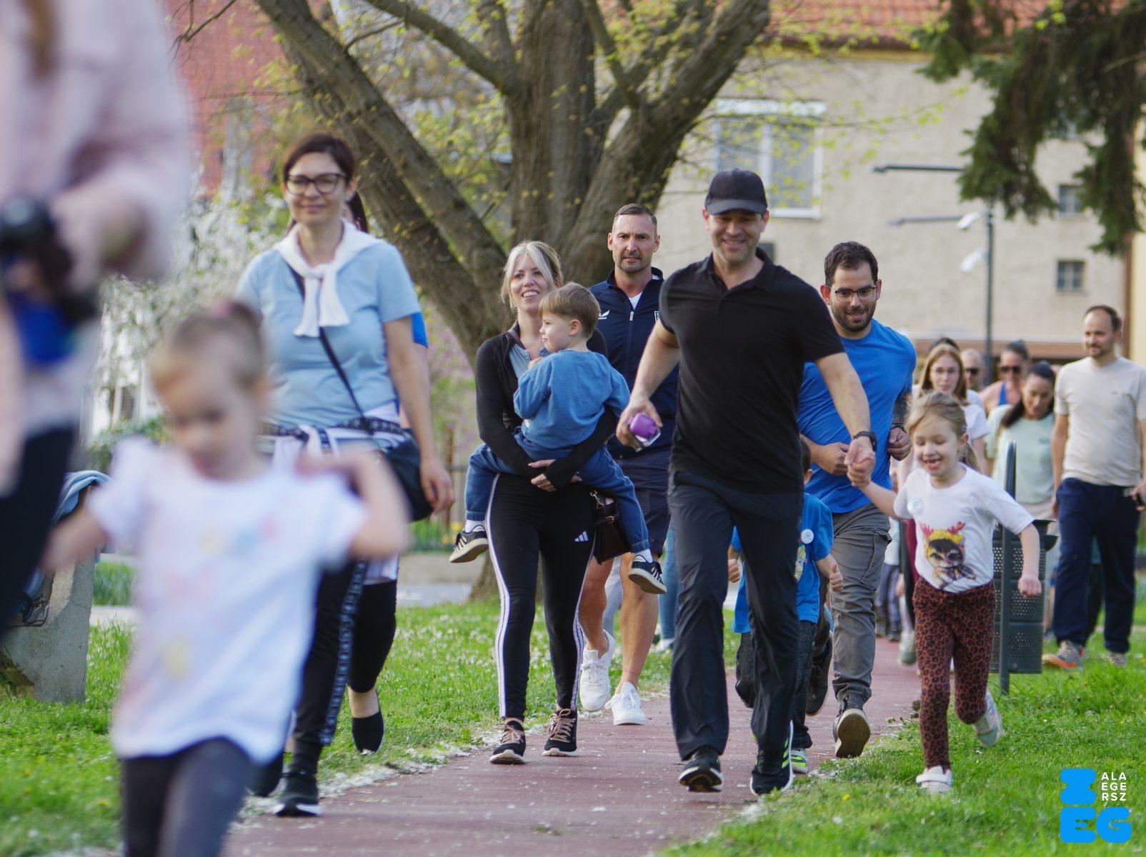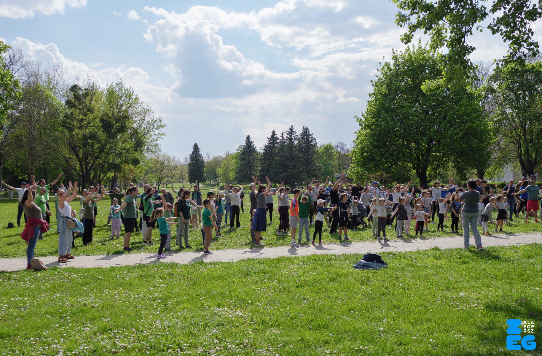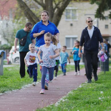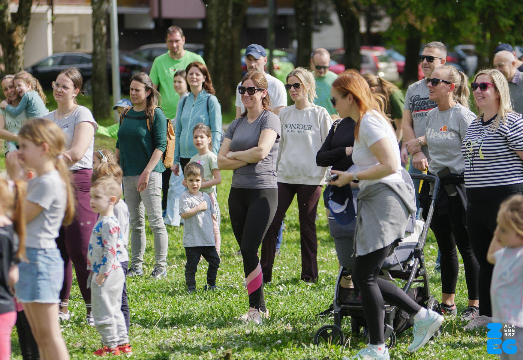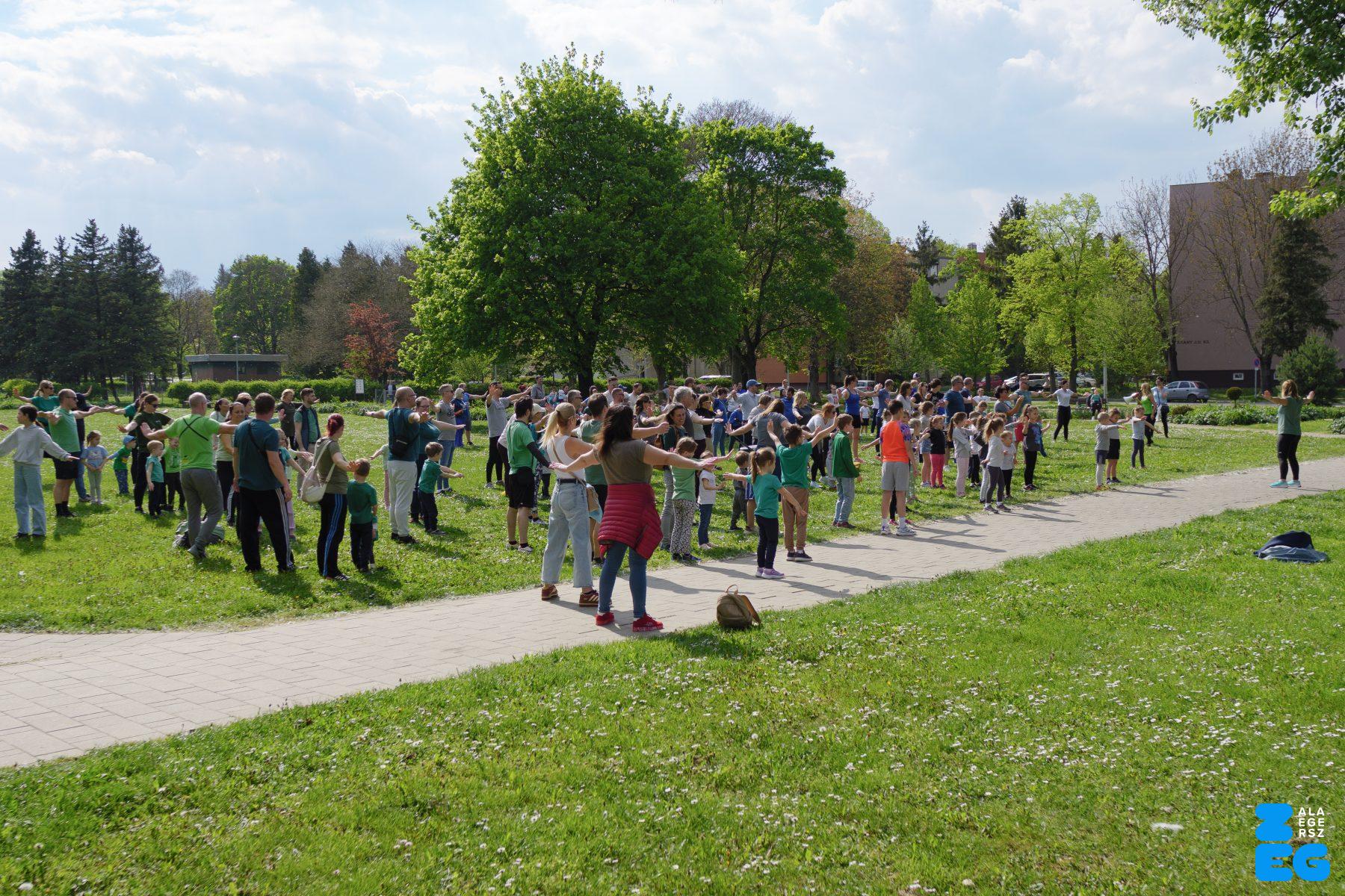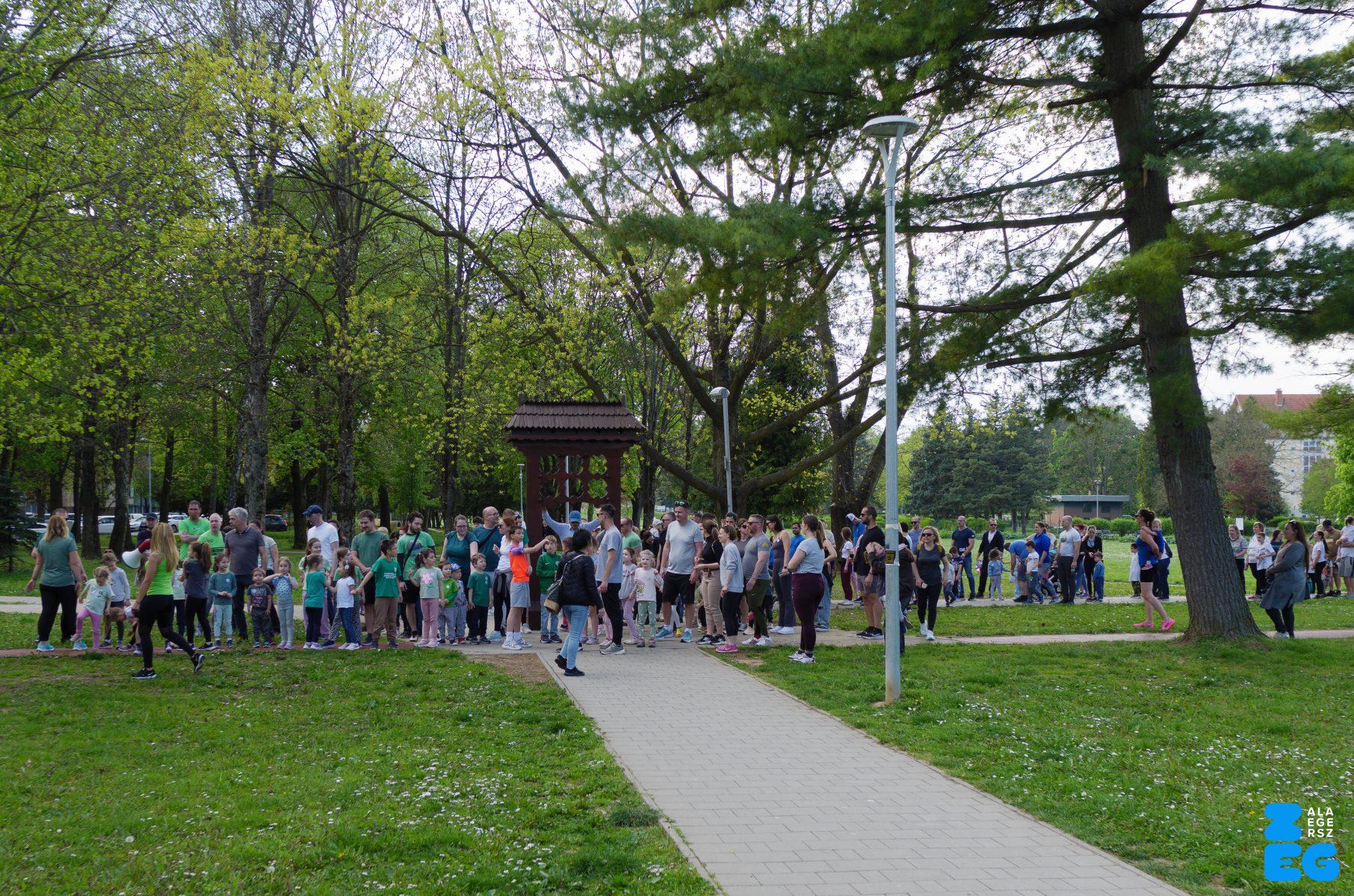 A Mikes Óvoda egészséghetet szervezett az Egészséges Zalaegerszeg Program keretében. A rendezvénysorozat elsődleges célja az egészséges életmód és a rendszeres mozgás népszerűsítése volt a legkisebbek körében. A tematikus hetet pénteken a Vizslaparkban zárták, ahol a gyerekek közös bemelegítéssel és egy vidám hangulatú futással búcsúztatták a programot. (Vizslapark, 2026.04.17.) – Fotó: Tóth János