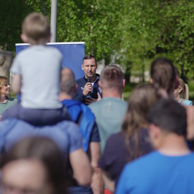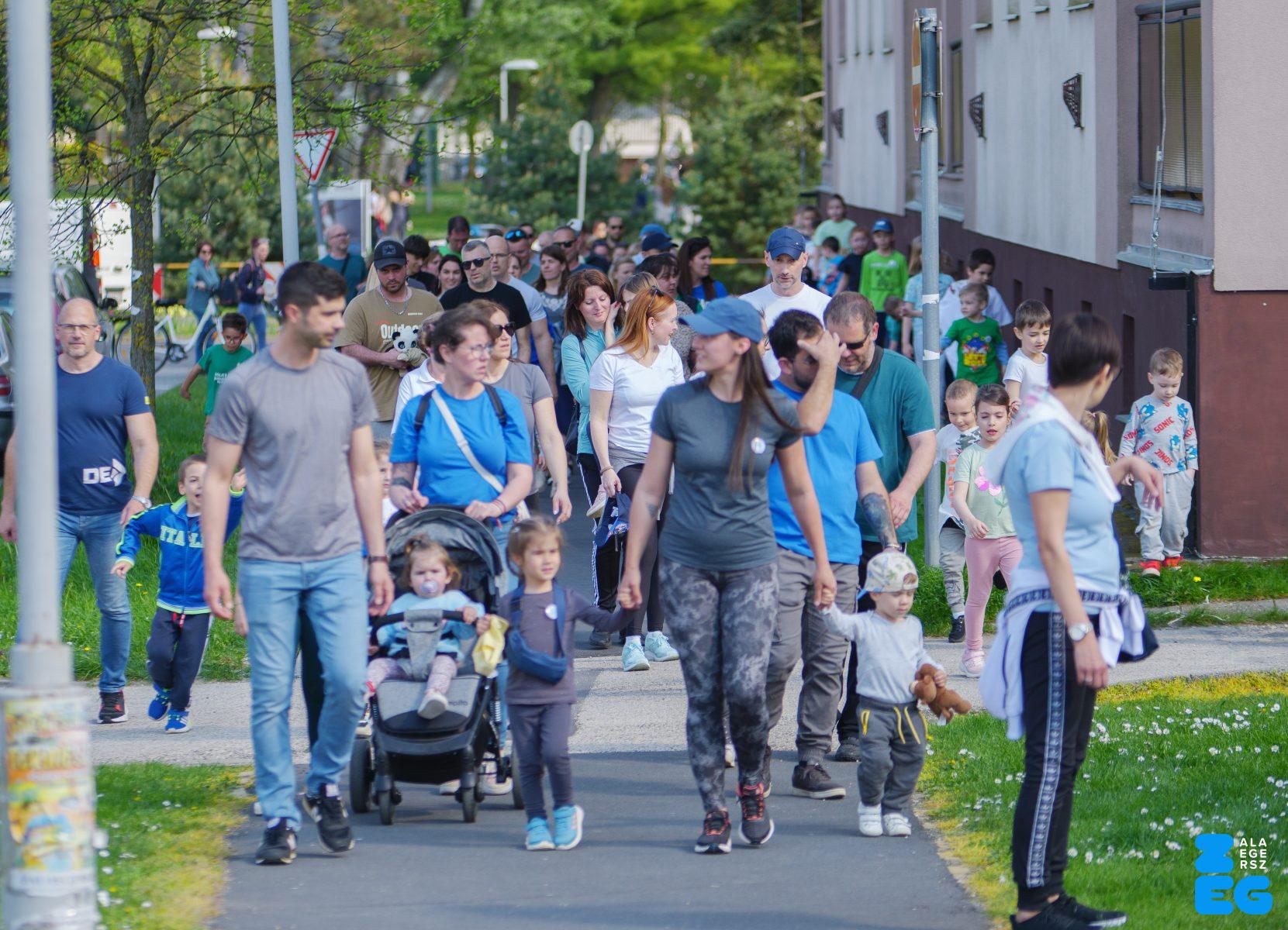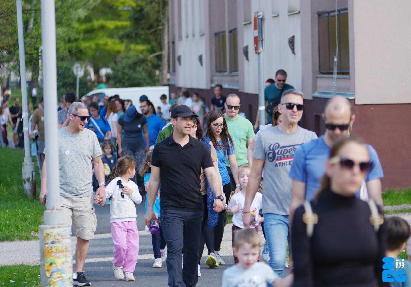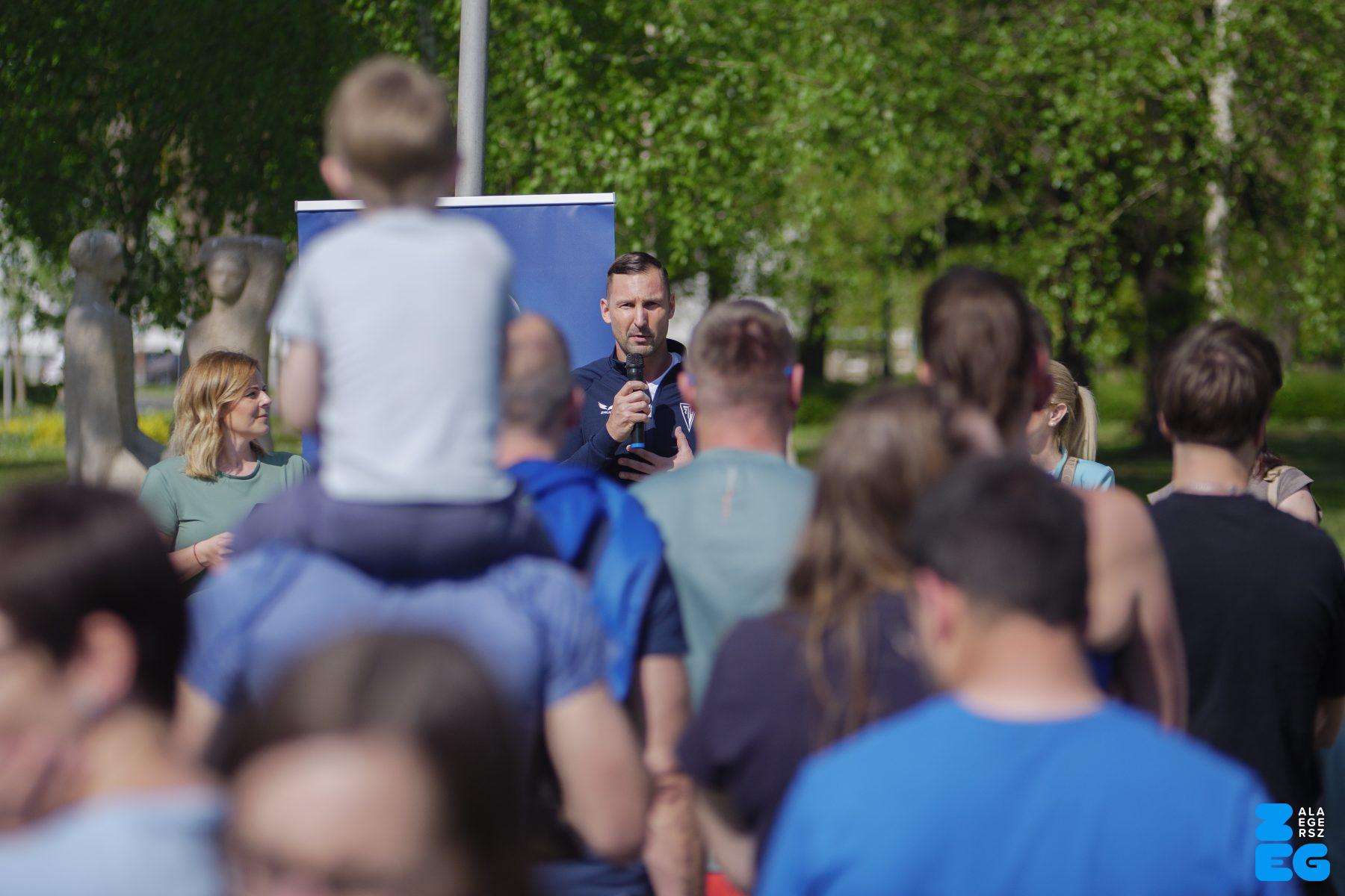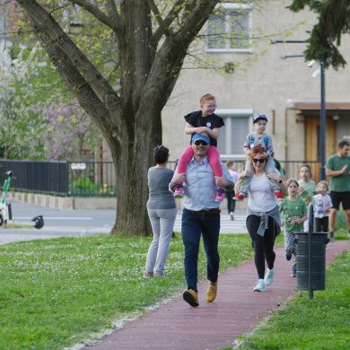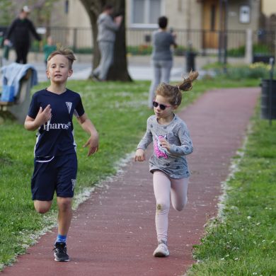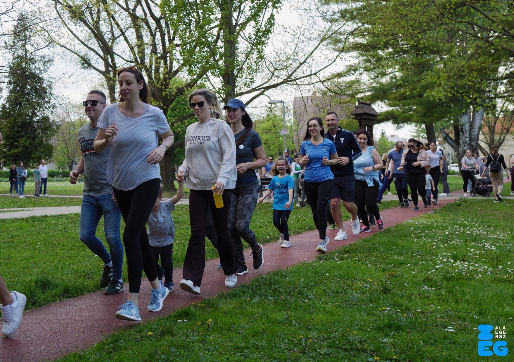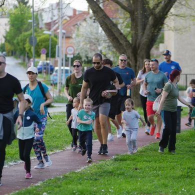 A Mikes Óvoda egészséghetet szervezett az Egészséges Zalaegerszeg Program keretében. A rendezvénysorozat elsődleges célja az egészséges életmód és a rendszeres mozgás népszerűsítése volt a legkisebbek körében. A tematikus hetet pénteken a Vizslaparkban zárták, ahol a gyerekek közös bemelegítéssel és egy vidám hangulatú futással búcsúztatták a programot. (Vizslapark, 2026.04.17.) – Fotó: Tóth János
