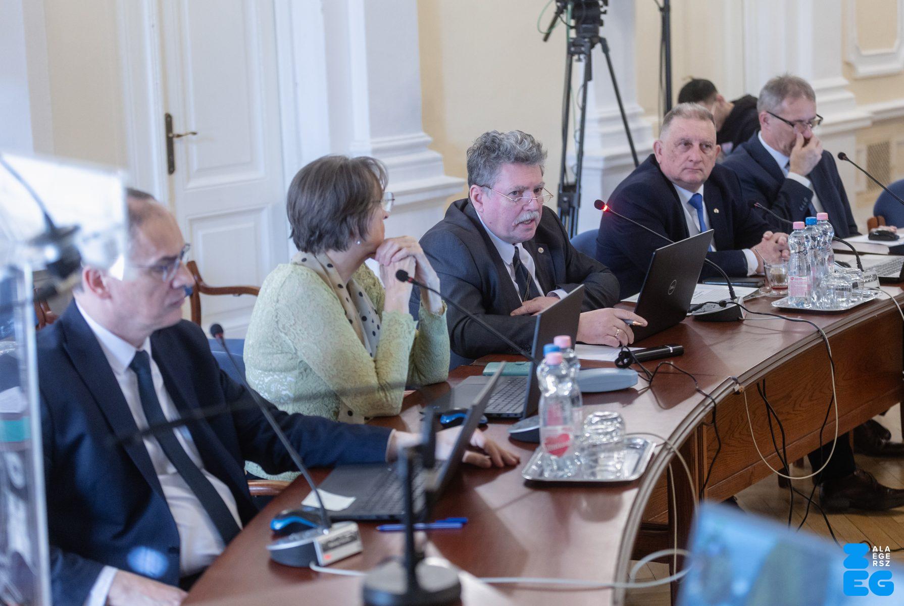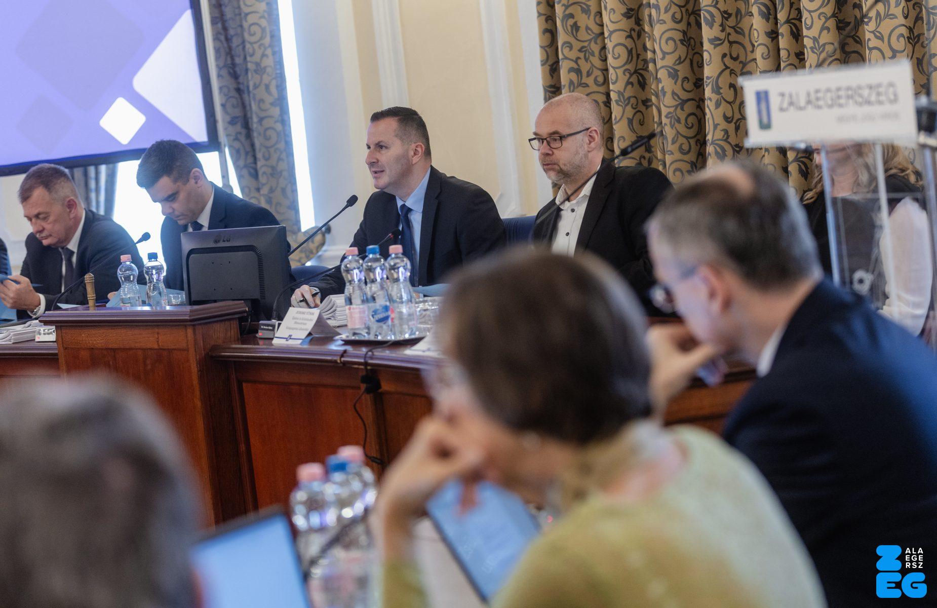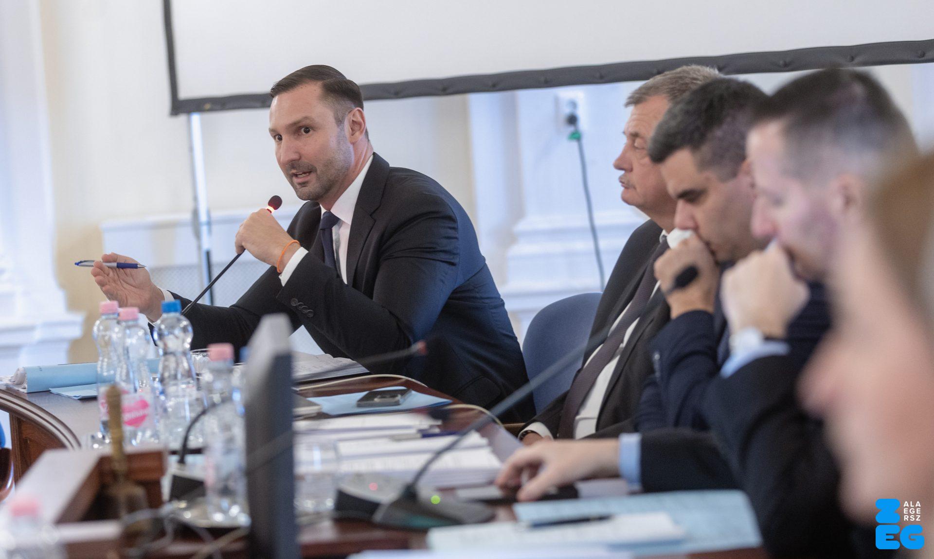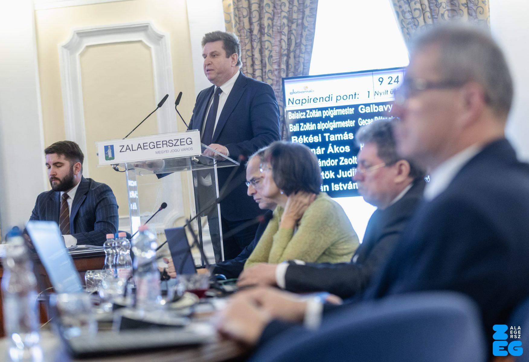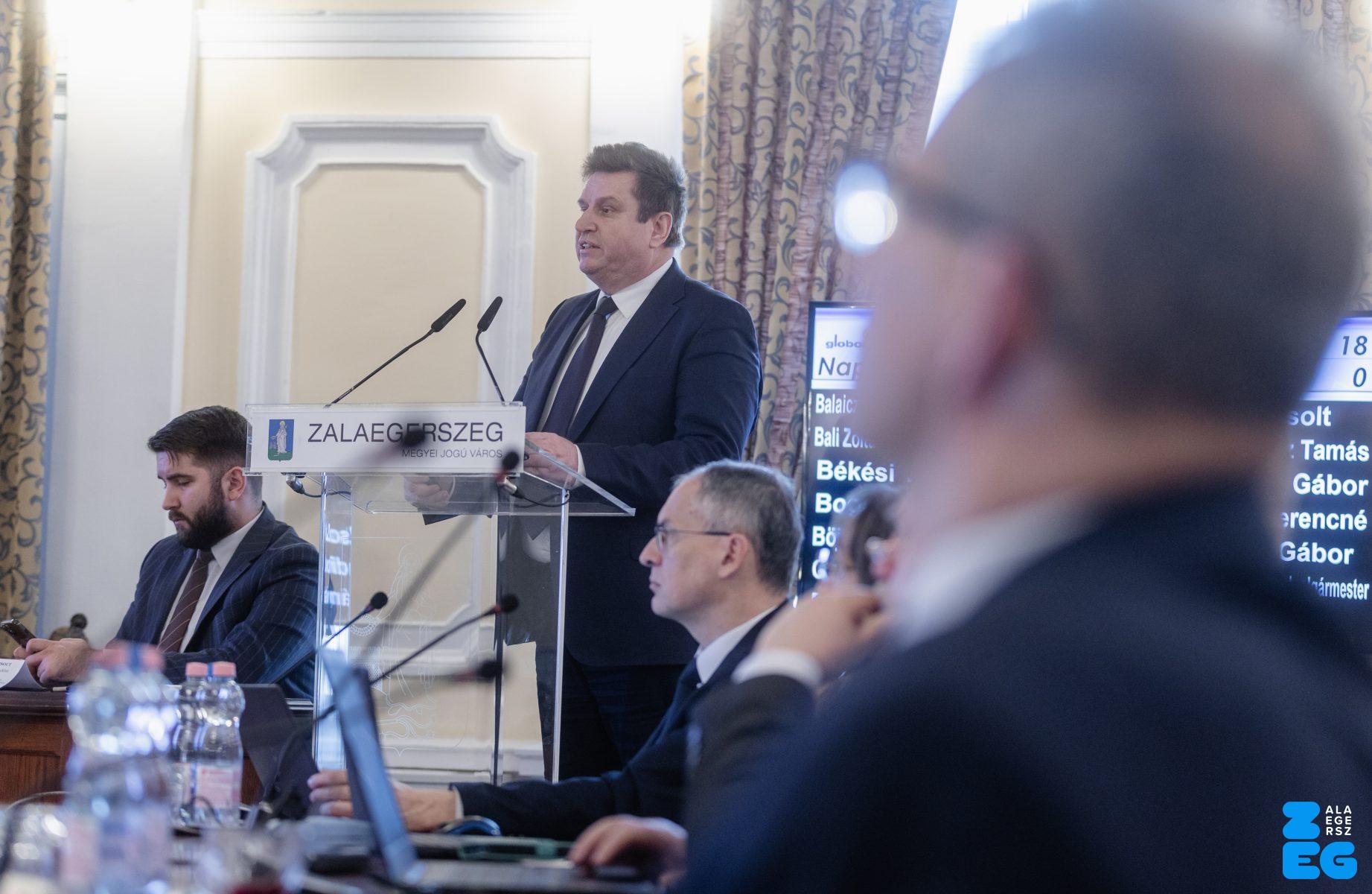Zalaegerszeg Megyei Jogú Város Önkormányzatának évi rendes közgyűlésének első pontjában az Építési és Közlekedési Minisztérium képviseletében megjelent Juhász Tünde államtitkár és Nyul Zoltán helyettes államtitkár tájékoztatatta a Zalaegerszegi mentőállomás terveiről a város képviselő-testületét. Ezt követően elfogadták a város költségvetését (Díszterem, 2026.02.12.) – Fotó: Seres Péter