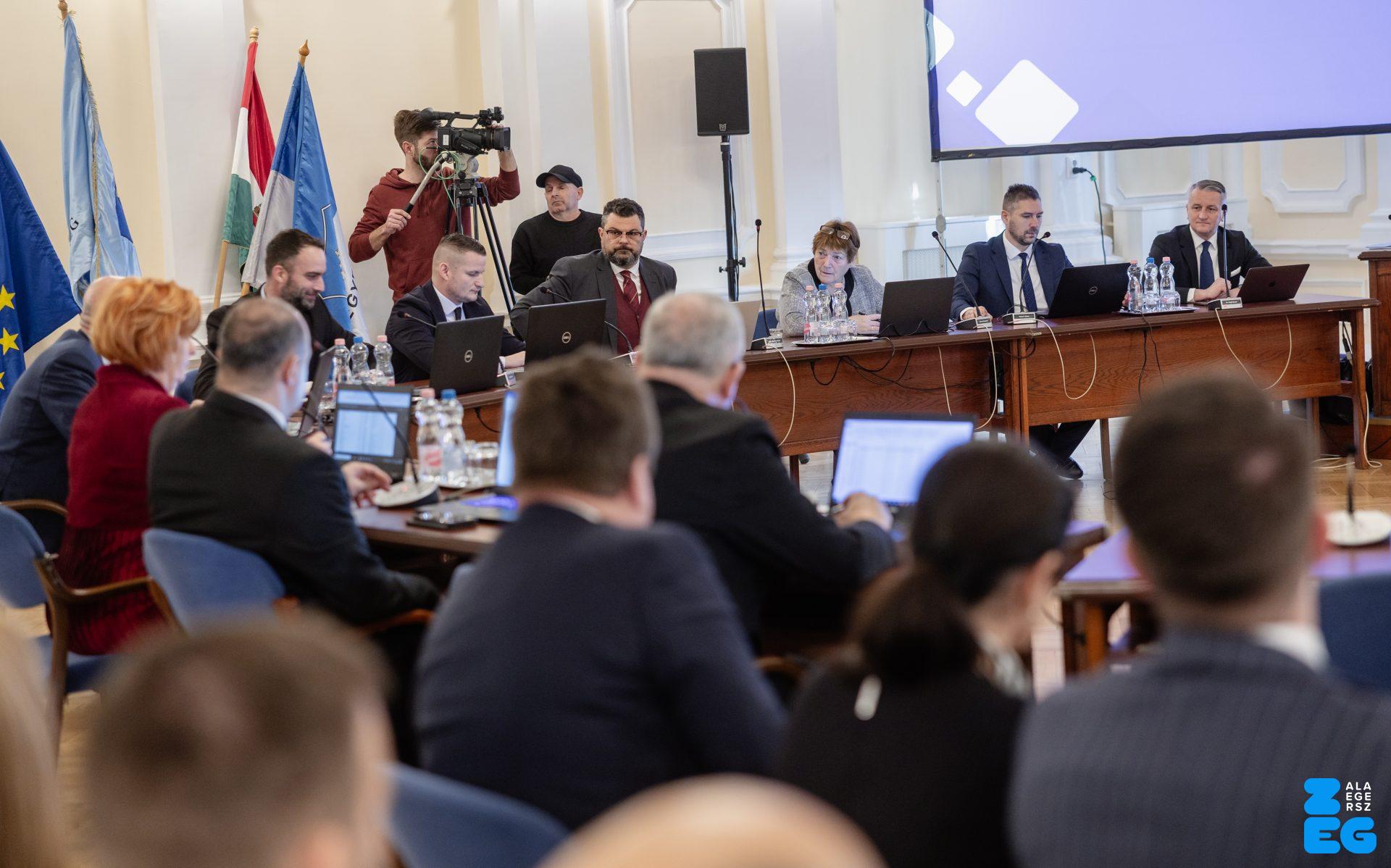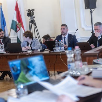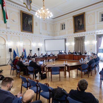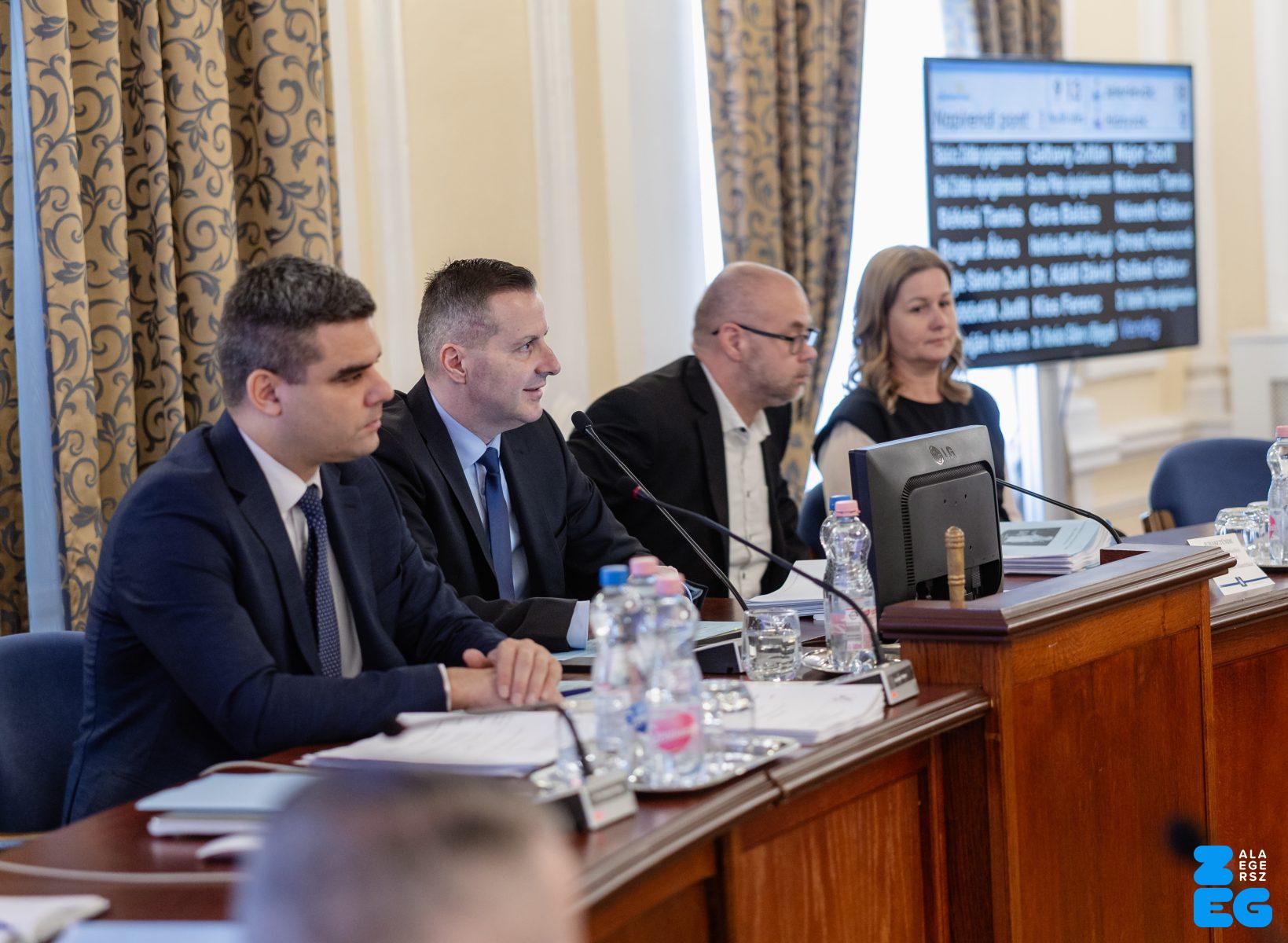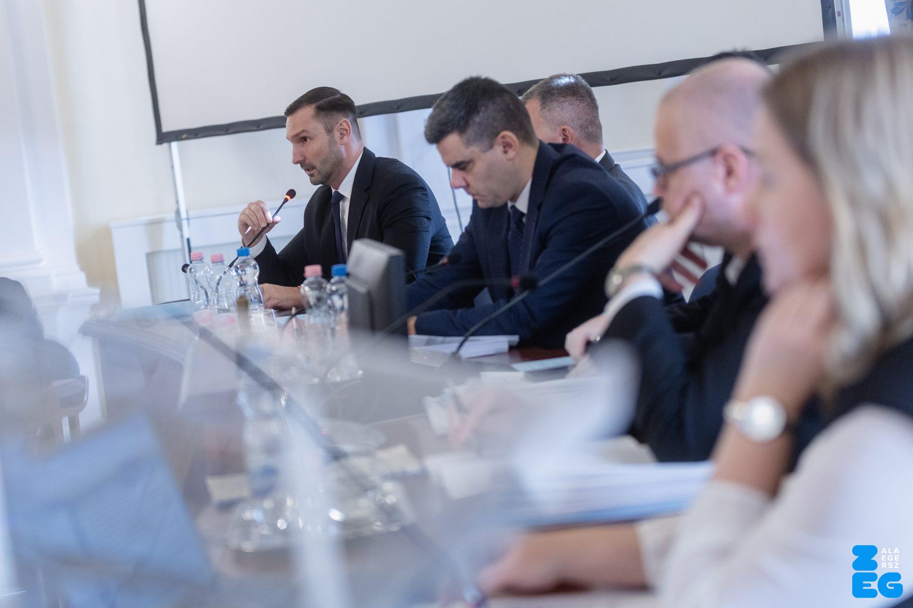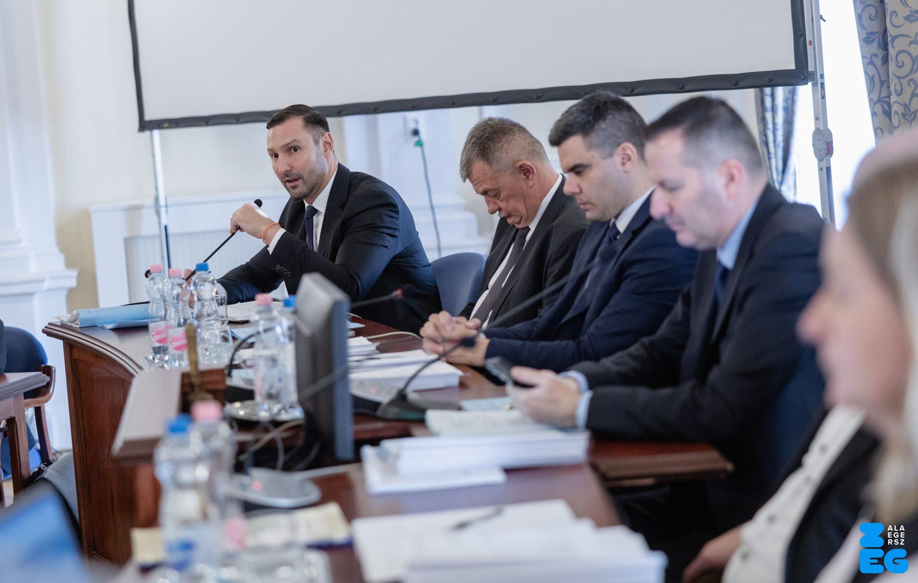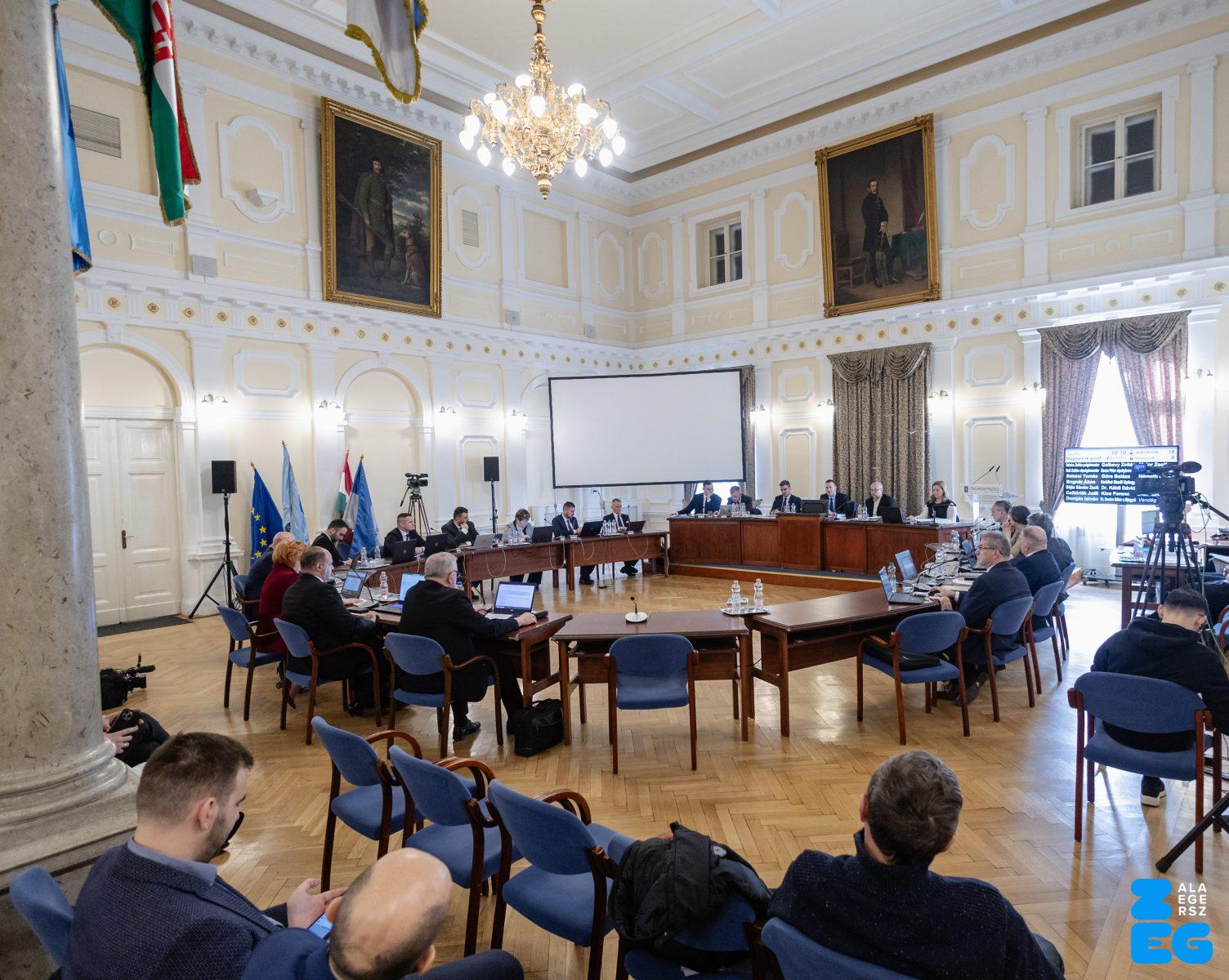 Zalaegerszeg Megyei Jogú Város Önkormányzatának évi rendes közgyűlésének első pontjában az Építési és Közlekedési Minisztérium képviseletében megjelent Juhász Tünde államtitkár és Nyul Zoltán helyettes államtitkár tájékoztatatta a Zalaegerszegi mentőállomás terveiről a város képviselő-testületét. Ezt követően elfogadták a város költségvetését (Díszterem, 2026.02.12.) – Fotó: Seres Péter