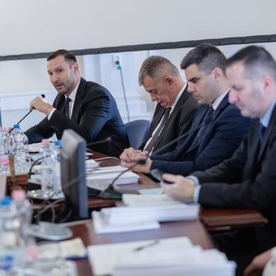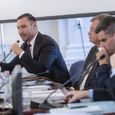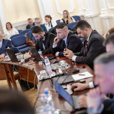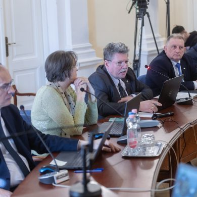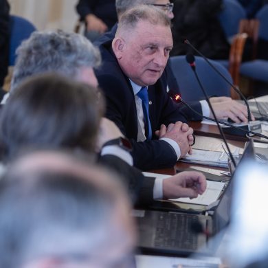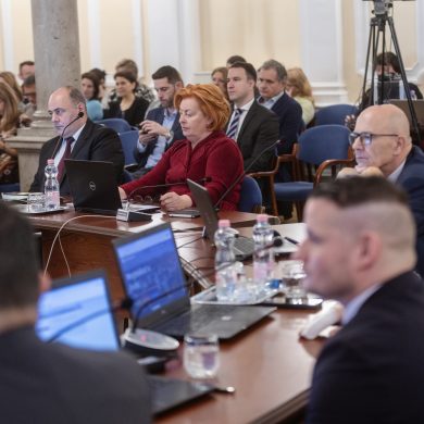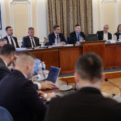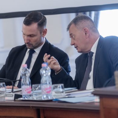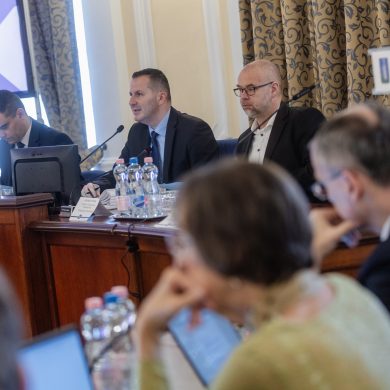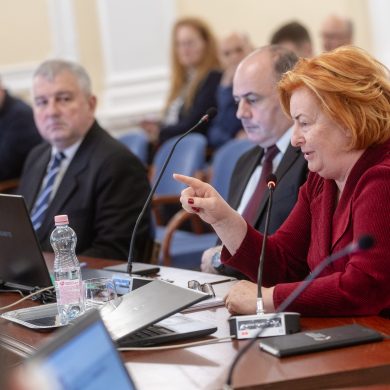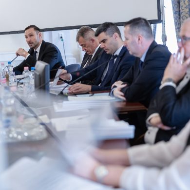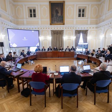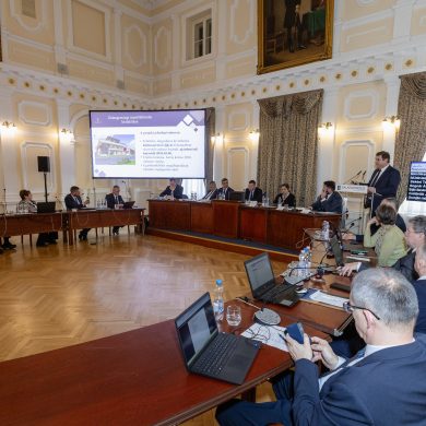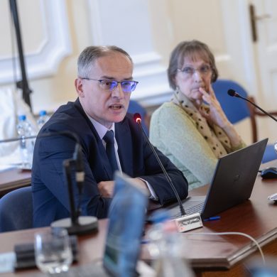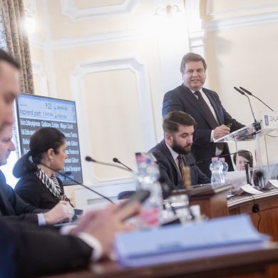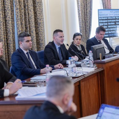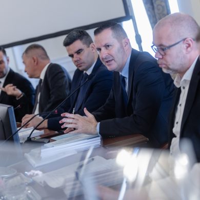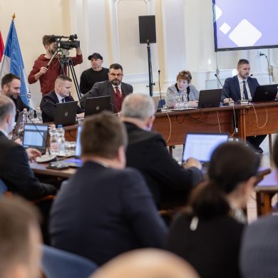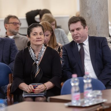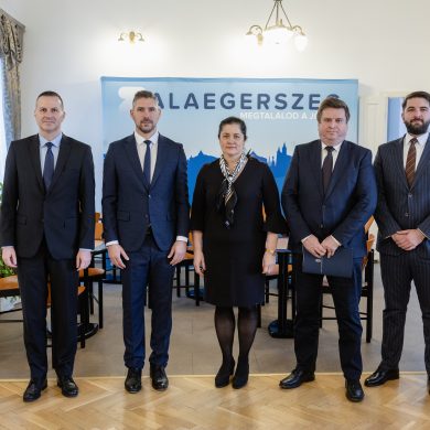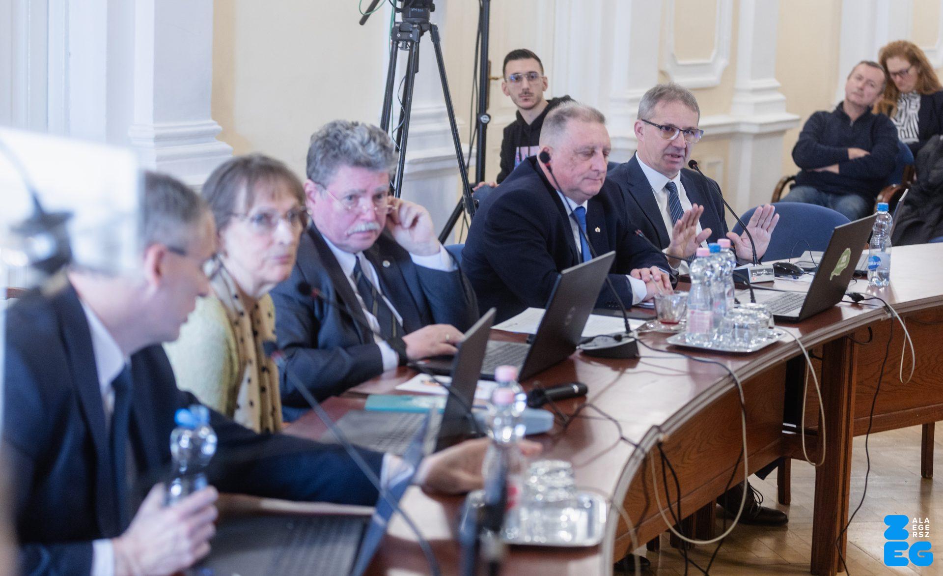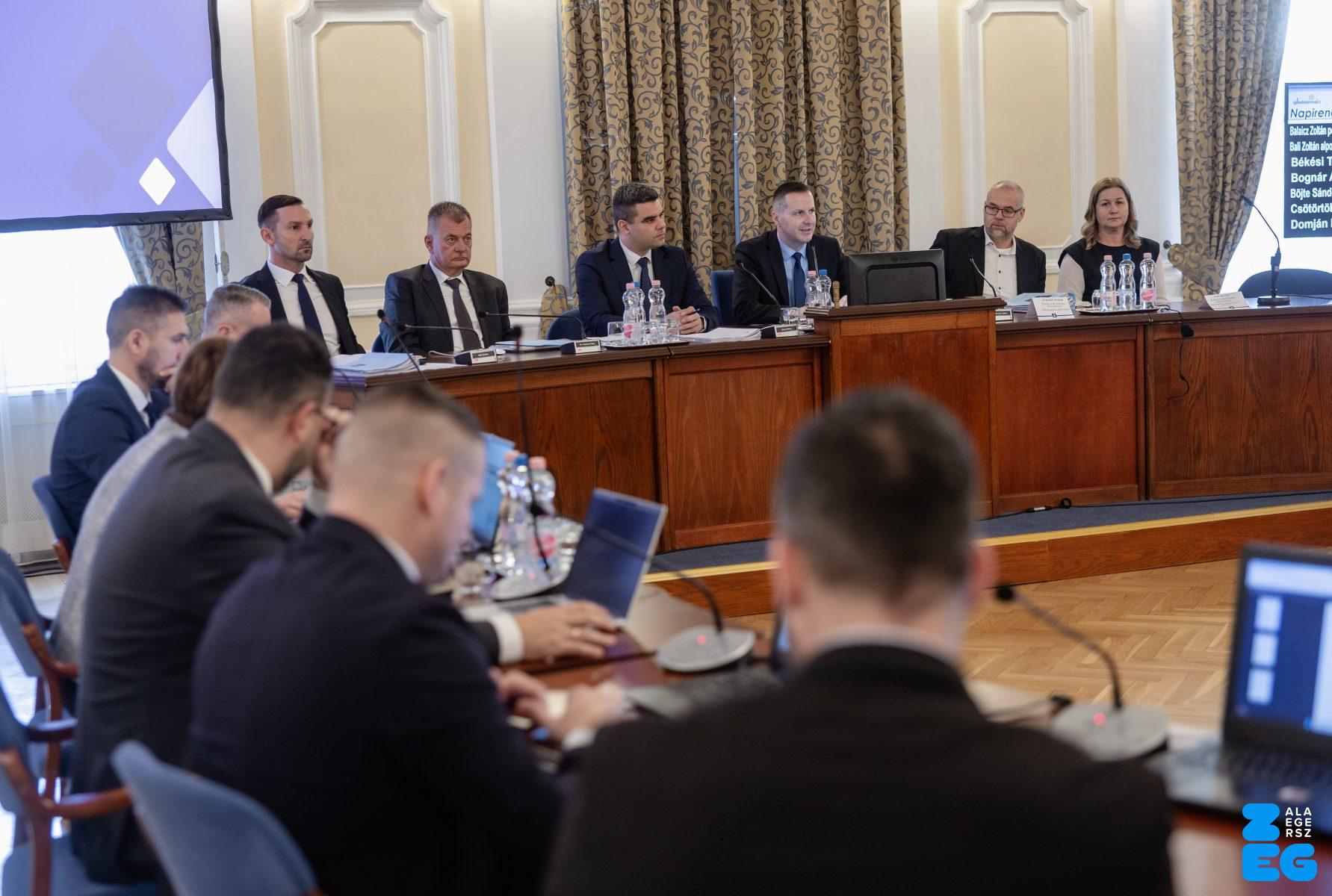 Zalaegerszeg Megyei Jogú Város Önkormányzatának évi rendes közgyűlésének első pontjában az Építési és Közlekedési Minisztérium képviseletében megjelent Juhász Tünde államtitkár és Nyul Zoltán helyettes államtitkár tájékoztatatta a Zalaegerszegi mentőállomás terveiről a város képviselő-testületét. Ezt követően elfogadták a város költségvetését (Díszterem, 2026.02.12.) – Fotó: Seres Péter