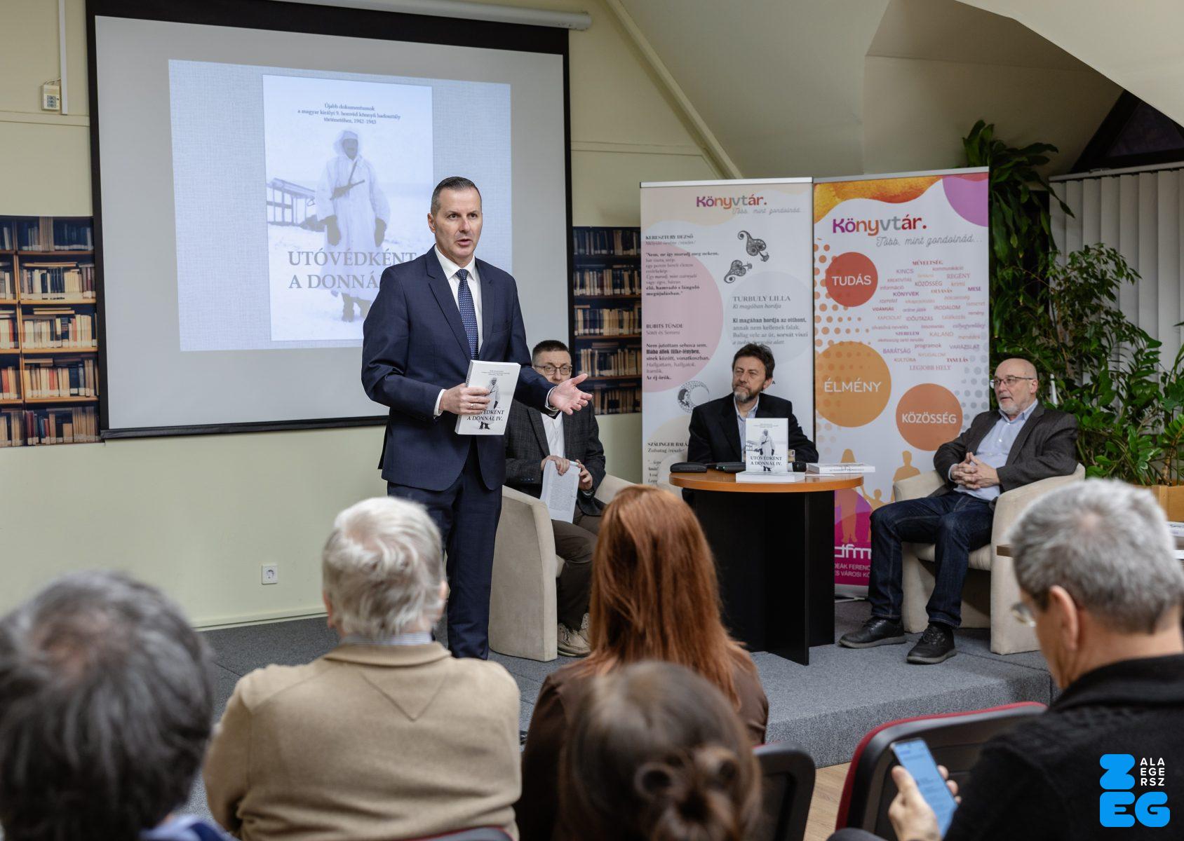 Könyvbemutató – Molnár András: Utóvédként a Donnál IV. Újabb dokumentumok a magyar királyi 9. honvéd könnyű hadosztály történetéhez, 1942-1943 kötetbemutató (Deák Ferenc Megyei és Városi Könyvtár, 2026.01.26.) – Fotó: Seres Péter
