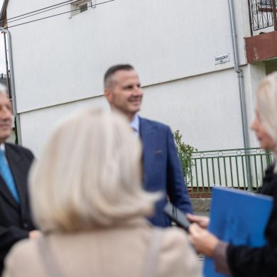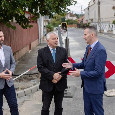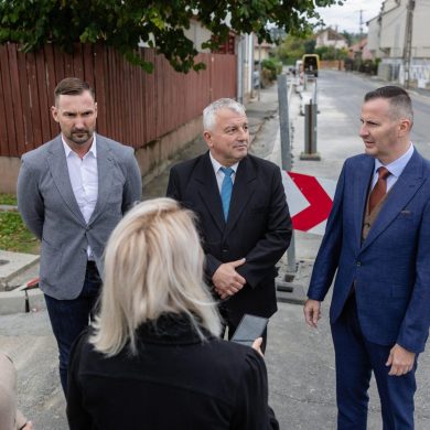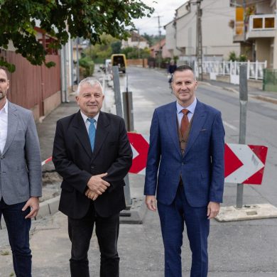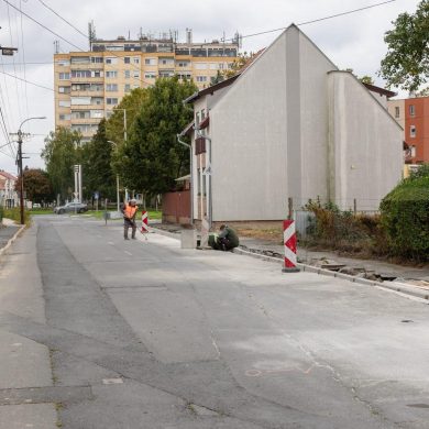 Zajlik az Ebergényi út felújítása a Platán sor és a Karácsony Sándor utcák közötti szakaszon – sajtóbejárás (2025.10.01.) – Fotó: Seres Péter