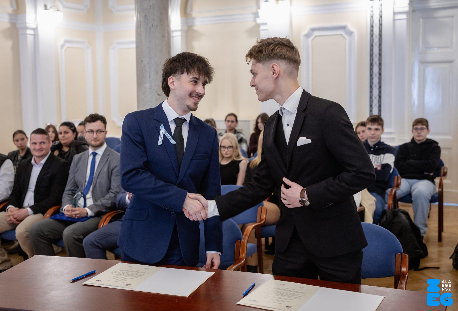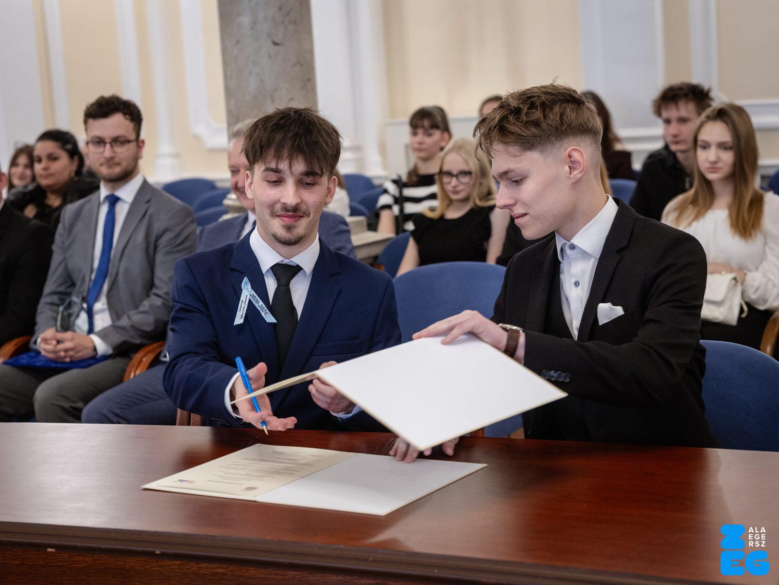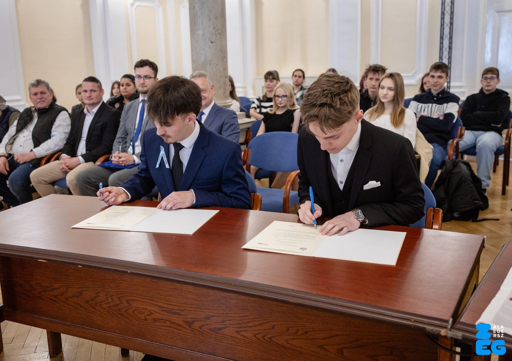 Fiatalok hete – ZVDÖK – diákközgyűlés. A ZVDÖK és a Dunaszerdahelyi diákönkormányzat ifjúsági testvérvárosi együttműködési szerződés aláírása (Díszterem, 2026.04.22.) – Fotó: Seres Péter