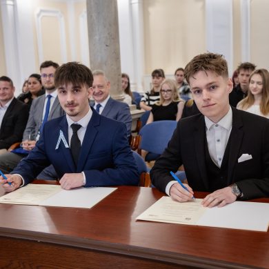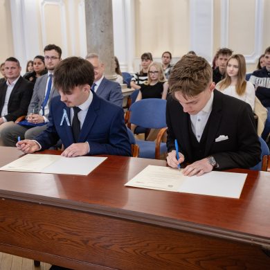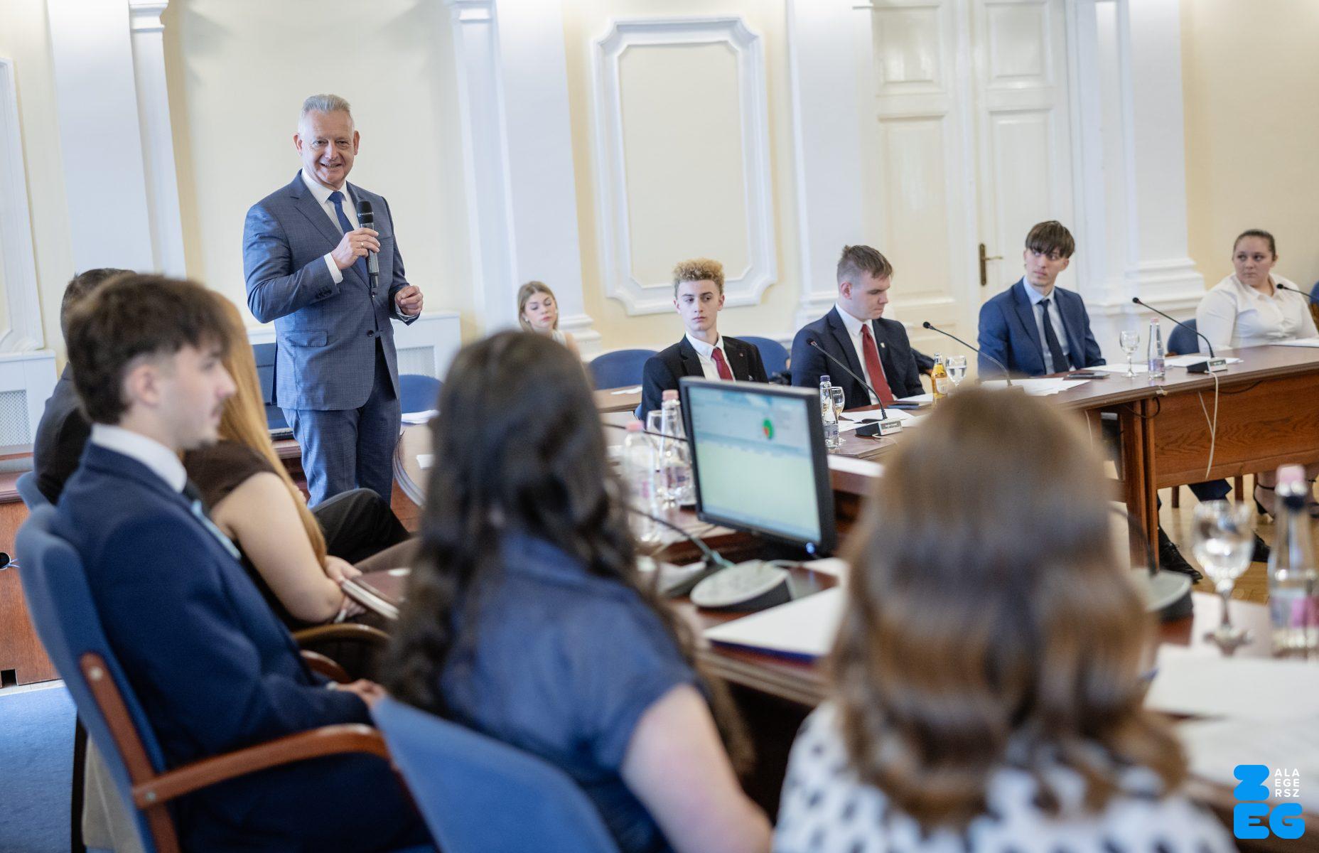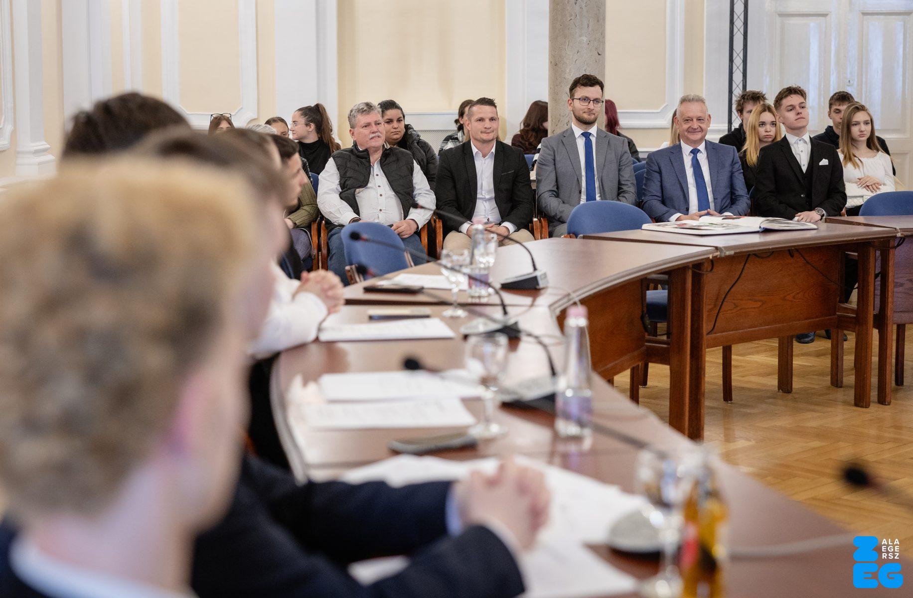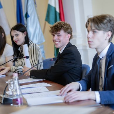 Fiatalok hete – ZVDÖK – diákközgyűlés. A ZVDÖK és a Dunaszerdahelyi diákönkormányzat ifjúsági testvérvárosi együttműködési szerződés aláírása (Díszterem, 2026.04.22.) – Fotó: Seres Péter