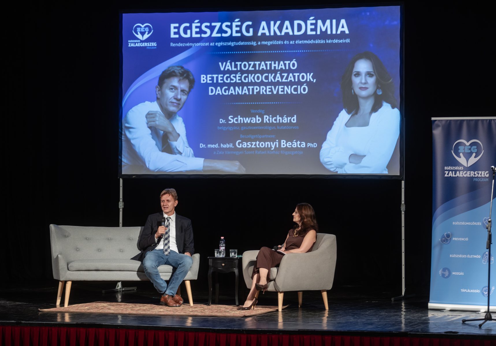 Ismét tanulhattak a zalaegerszegiek az ingyenes Egészség Akadémia program keretében. A fókuszba ezúttal a változtatható betegségkockázatok és a daganatprevenció került, Schwab Richárd gasztroenterológus és Gasztonyi Beáta a Zala Vármegyei Szent Rafael Kórház főigazgatója beszélgetésében.