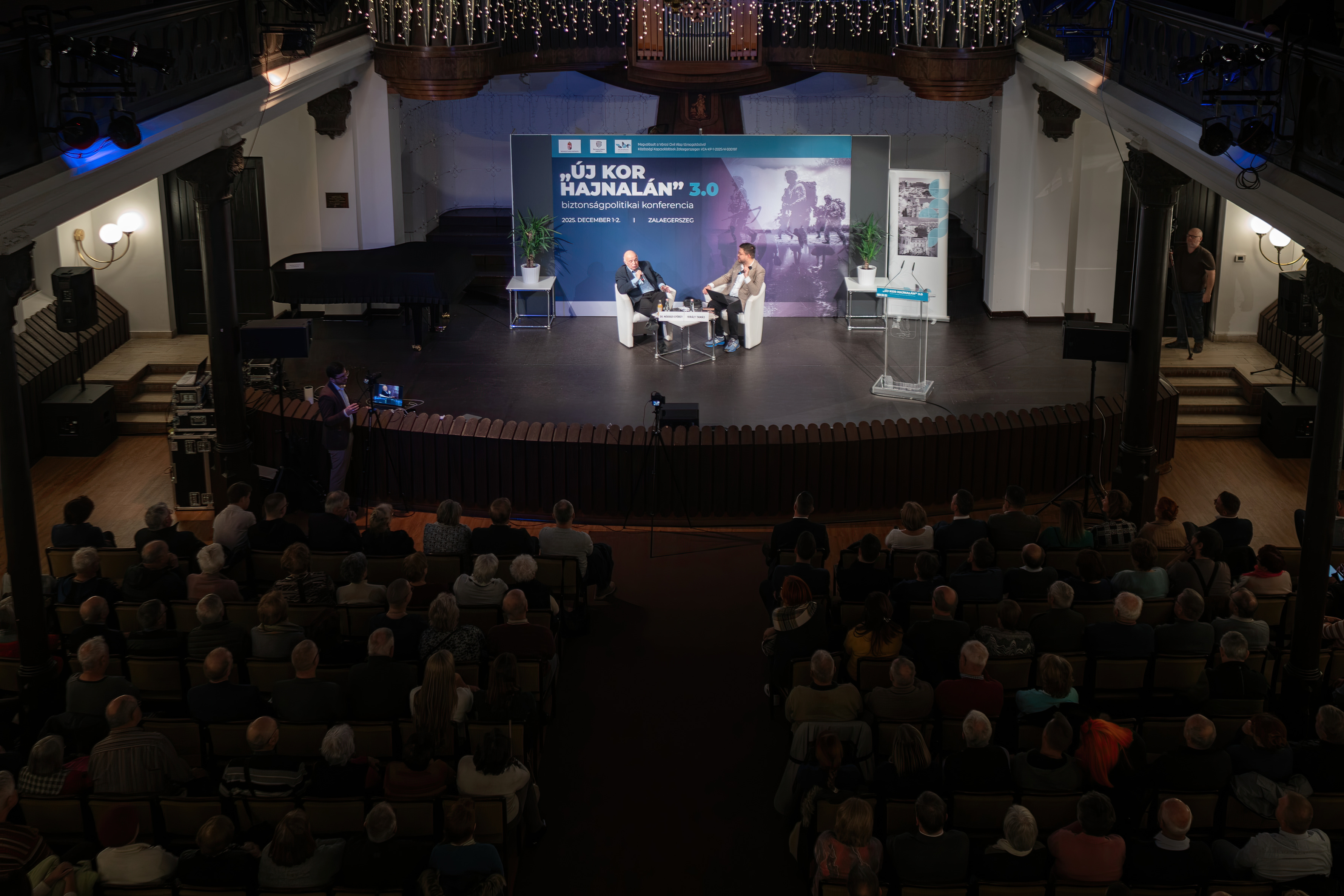 Nógrádi György volt a vendég a Zalaegerszeg Barátai Egyesület „Új kor hajnalán” 3.0 című rendezvényén a Városi Hangverseny- és kiállítóteremben. A biztonságpolitikai szakértő Európa jelenlegi helyzetétől a közel-keleti válságon át egészen Irán szerepéig a legfontosabb nemzetközi kérdéseket elemezte.